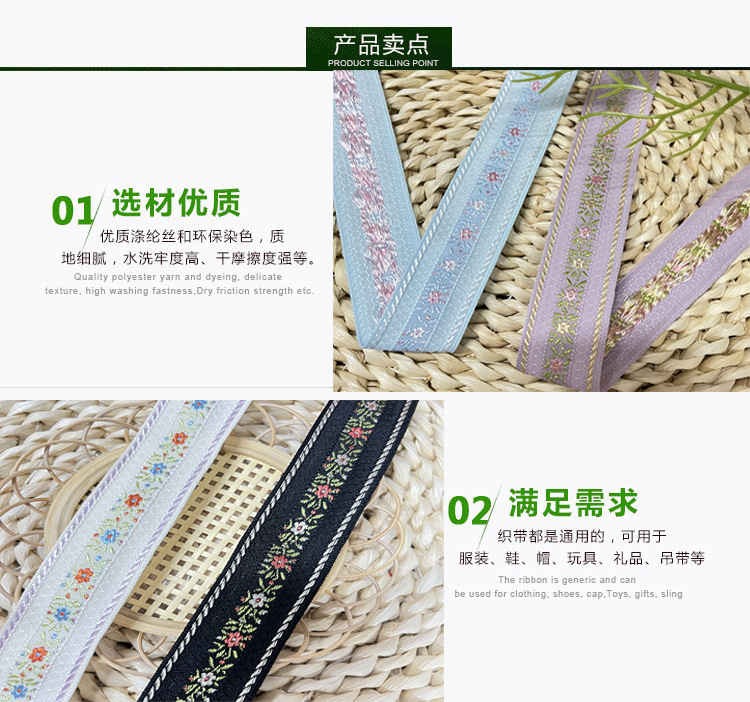 자수 자카드 리본 폴리에스터 리본 액세서리 선물 포장 리본 장식 리본 수제 DIY