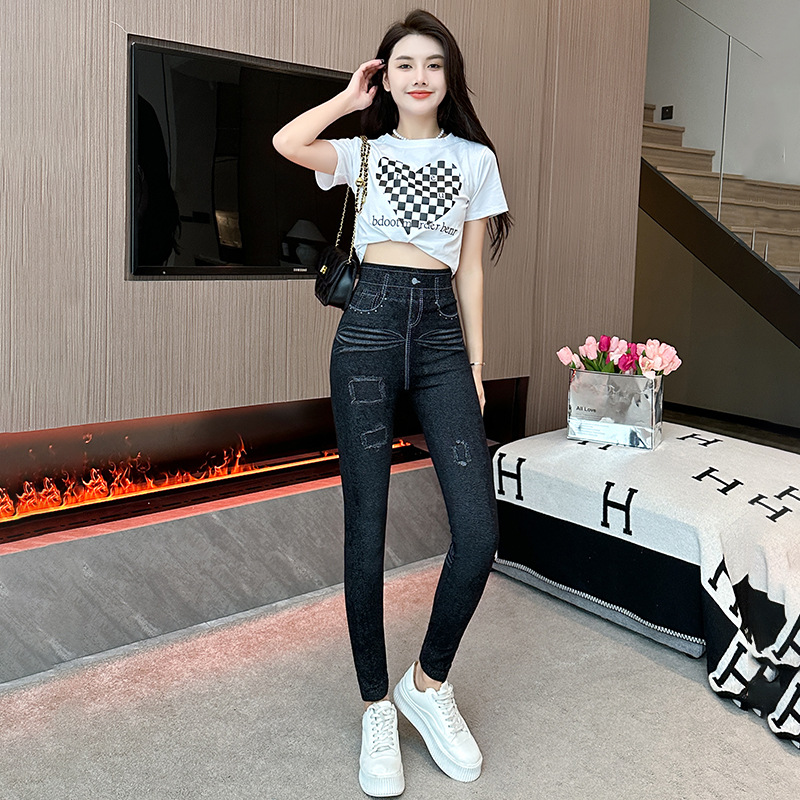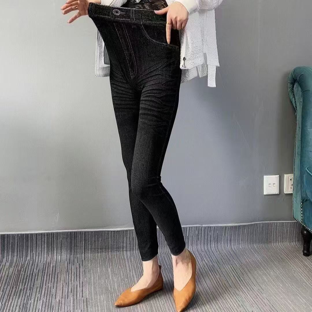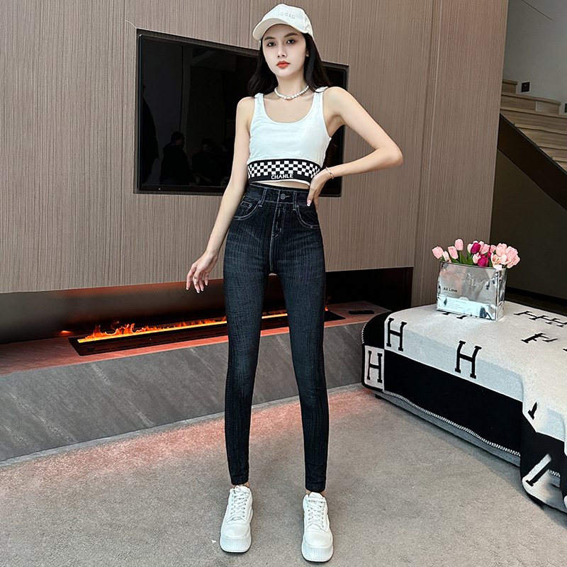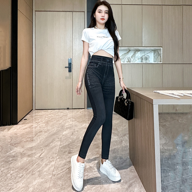 독특한 디자인의 다용도 여성용 타이트 팬츠, 가을용 홍콩 스타일 데님 느낌 레깅스, 여성용 슬림핏 나인 팬츠스토어 가기