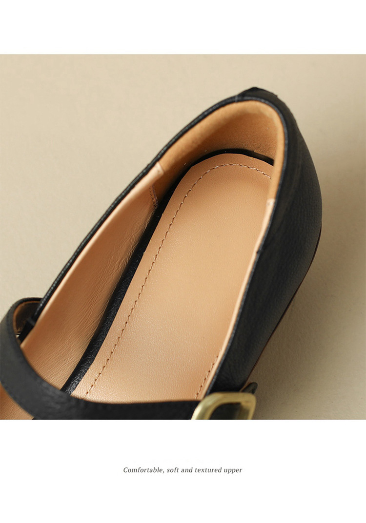 빈티지 메리 제인 신발 가죽 두꺼운 굽 단일 레이어 신발 여성의 가을 새로운 얕은 입 뾰족한 1 자 버클 미들 힐 41-43