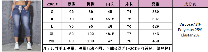 크로스보더 무역 여성용 청바지, 신축성 있는 허리끈, 하이웨이스트, 데미지 디테일, 여성용 고탄성 데님 핫팬츠, 활용도 높은 레이지 스타일