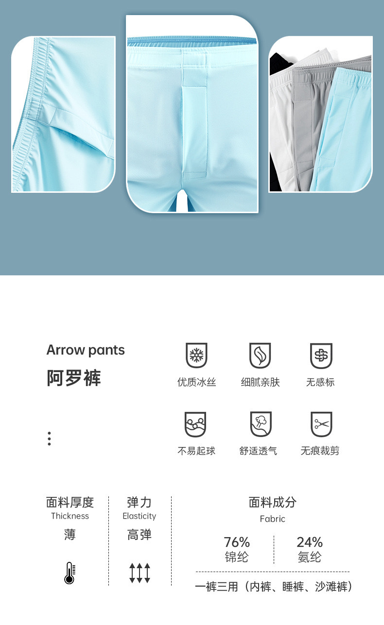 여름 아이스 실크 알로 바지 남자 속옷 느슨한 4 라인 플러스 사이즈 편안한 홈 파자마 복서 통기성 복서 바지스토어 가기