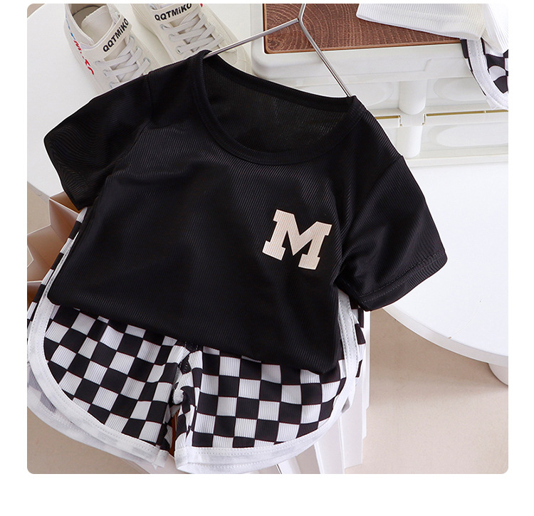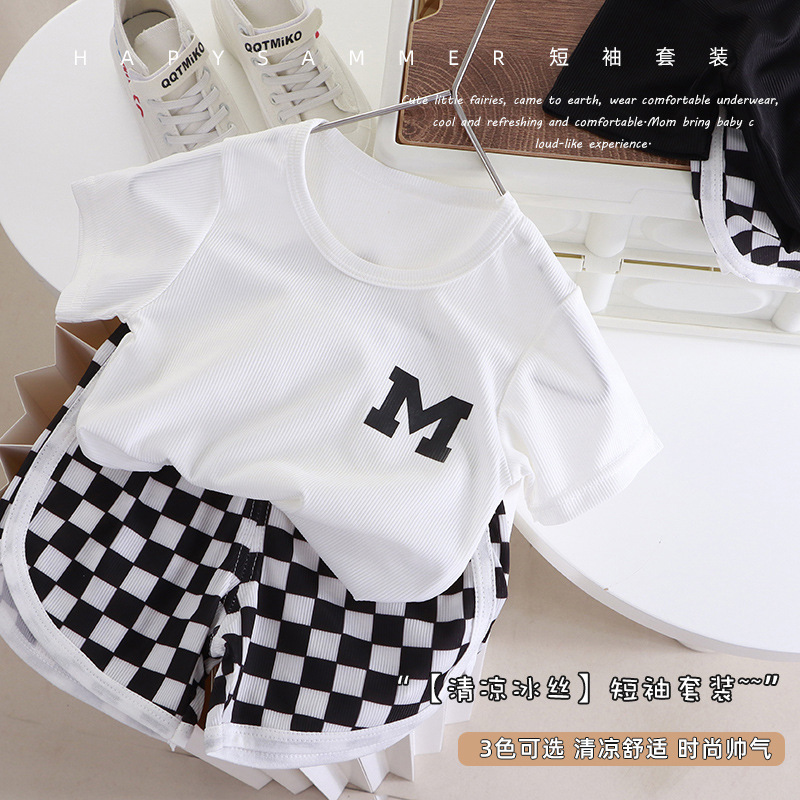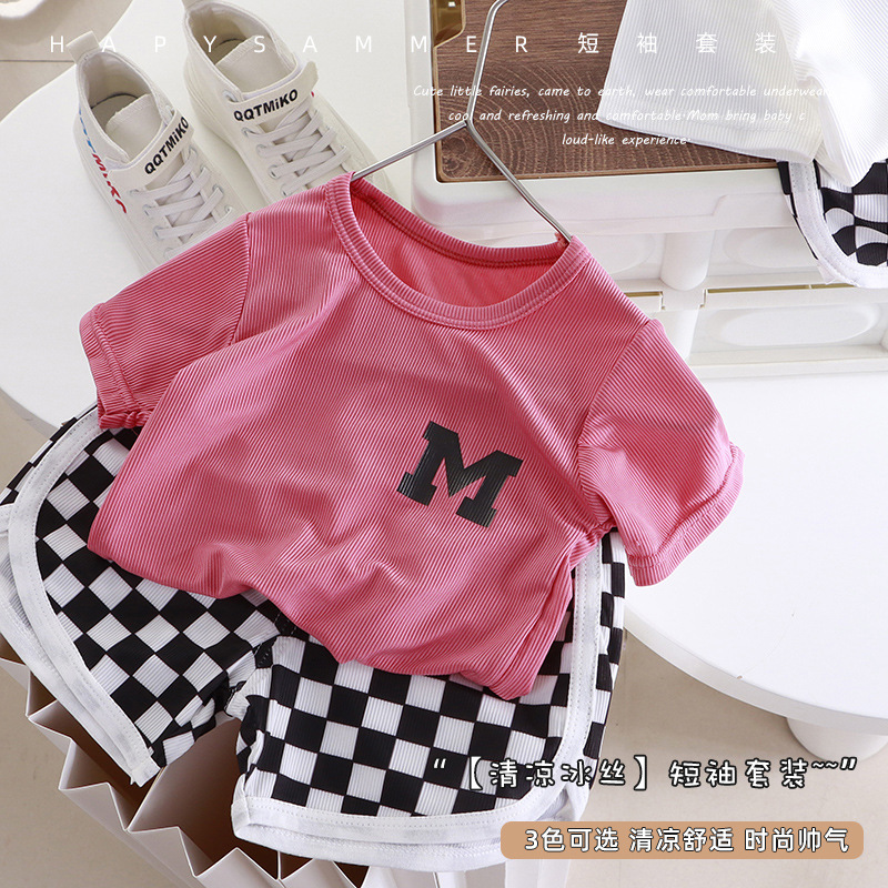 여름 한국 스타일 어린이 반팔 정장 아기 소년 캐주얼 티셔츠 반바지 2 피스 세트 중소 어린이 얇은 여름 의류 배치스토어 가기