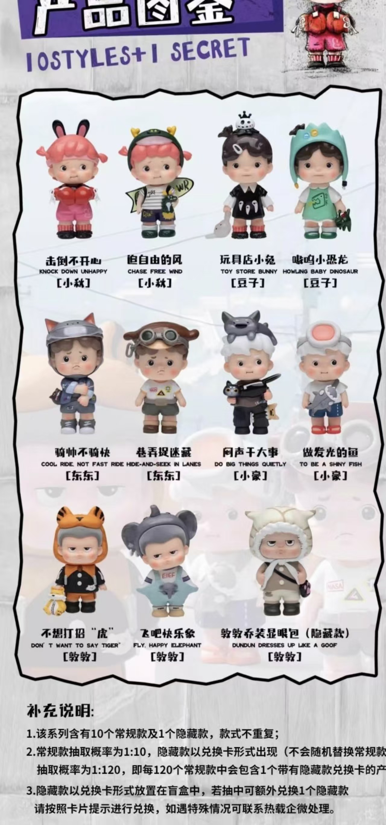 • Qing Yu Nian Q 버전 블라인드 박스 피규어(한쪽 끝에 10개, 상자에 100개)