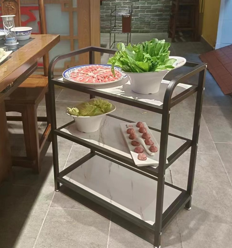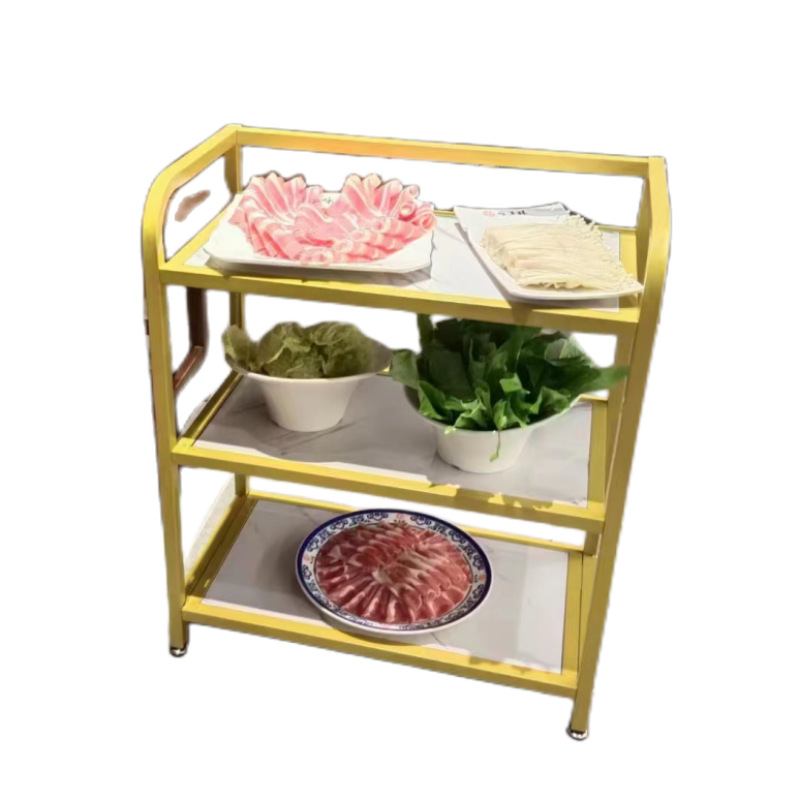 주방 마감 보관 랙 냄비 레스토랑 식품 랙 골든 스퀘어 튜브 다층 식품 스톨스토어 가기