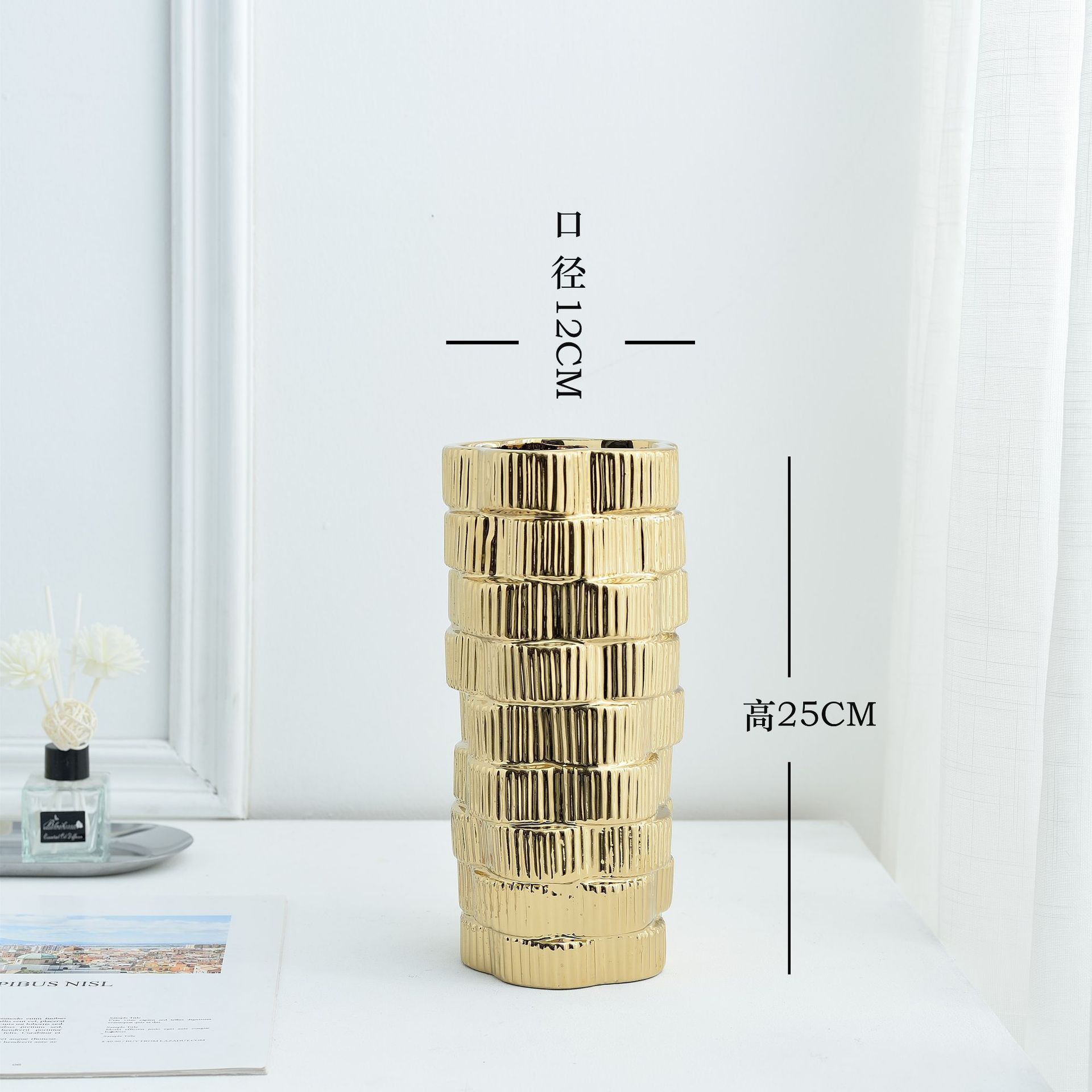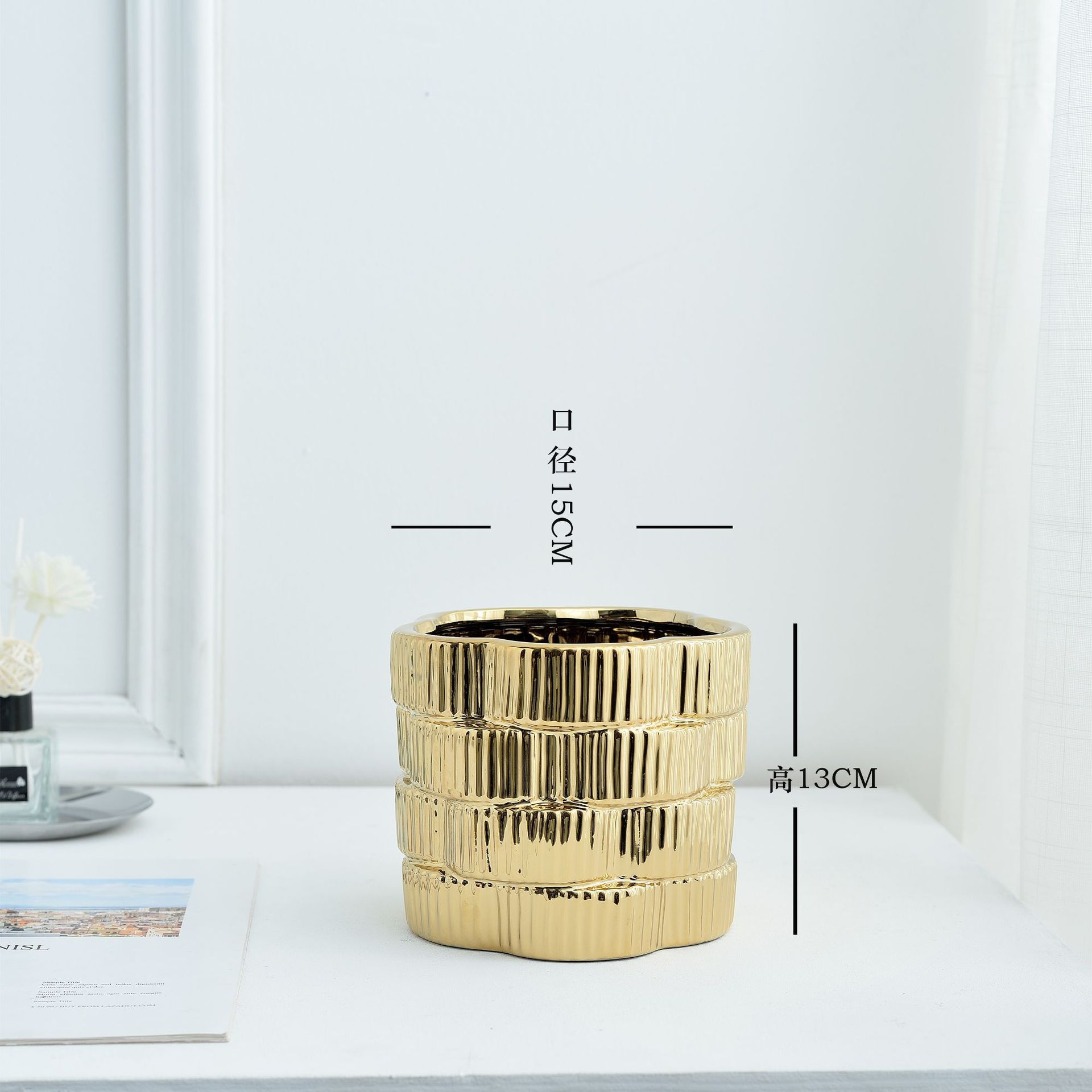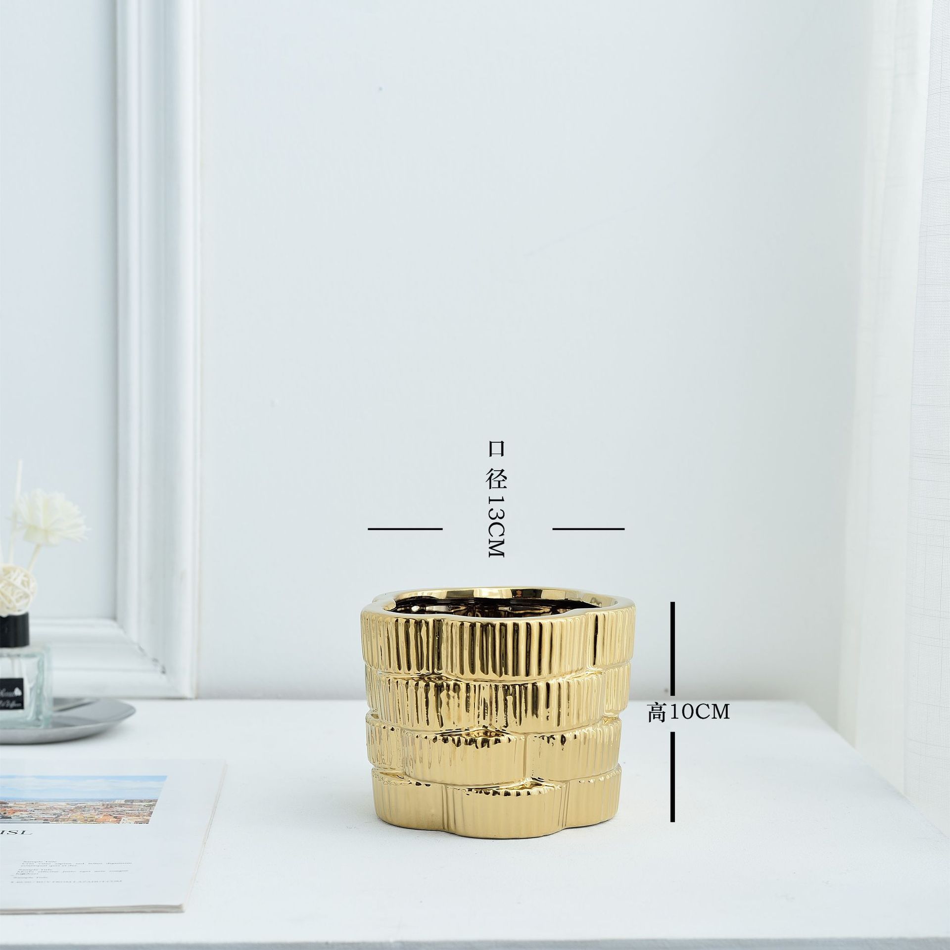 간단한 현대 빛 럭셔리 호텔 전기 도금 금 실버 부드러운 장식 세라믹 꽃병 냄비 장식품
