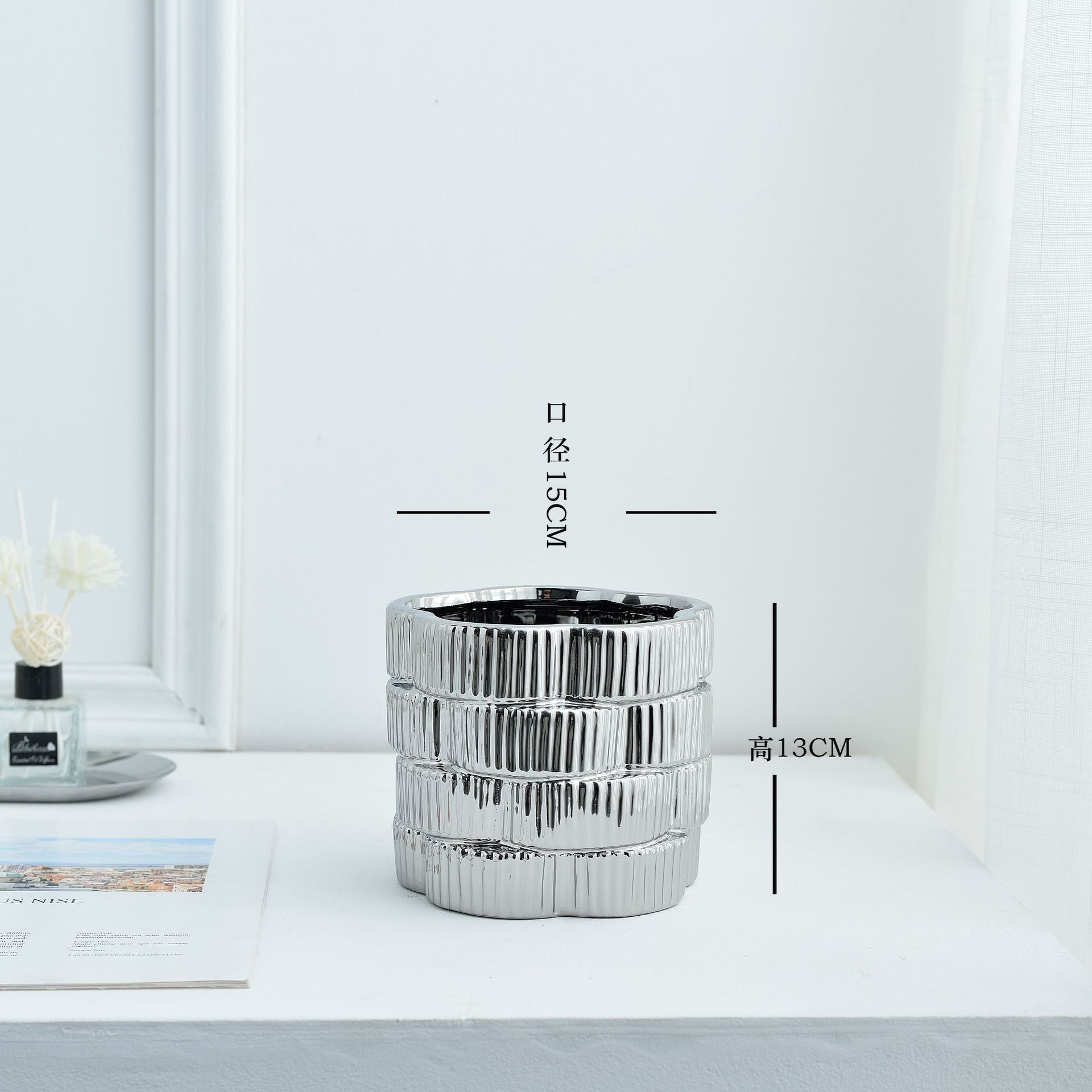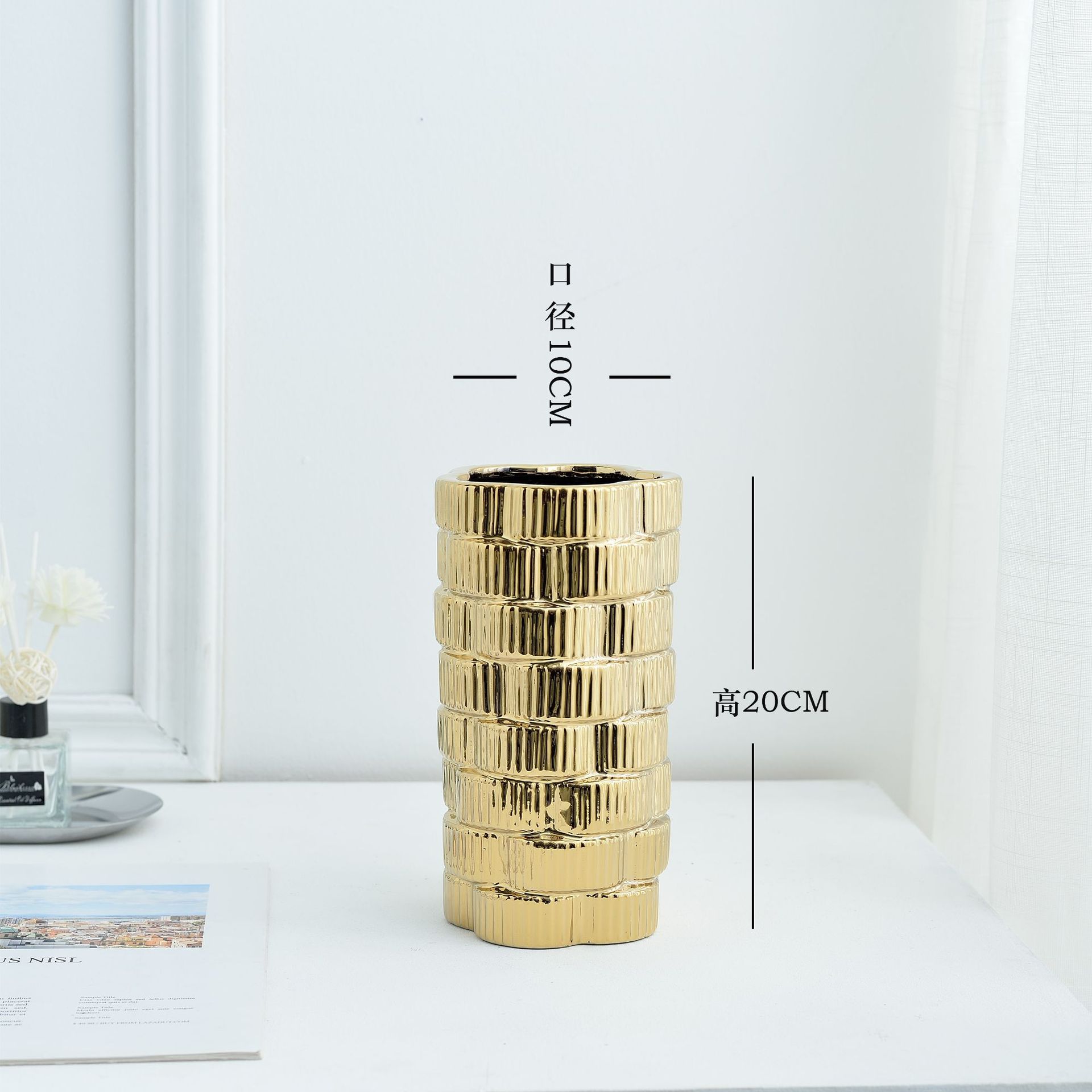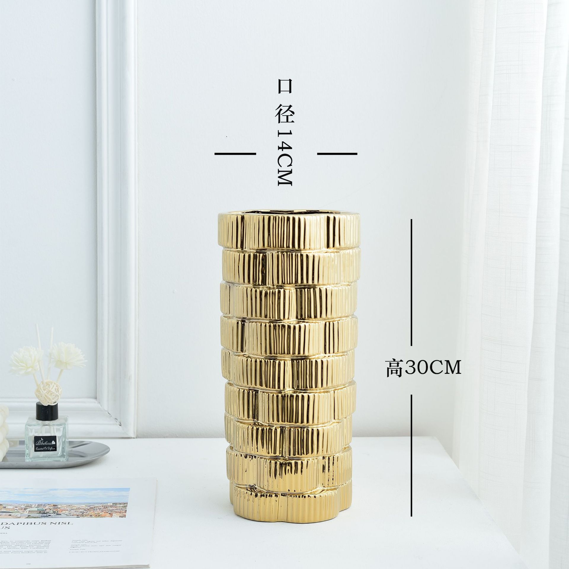 간단한 현대 빛 럭셔리 호텔 전기 도금 금 실버 부드러운 장식 세라믹 꽃병 냄비 장식품