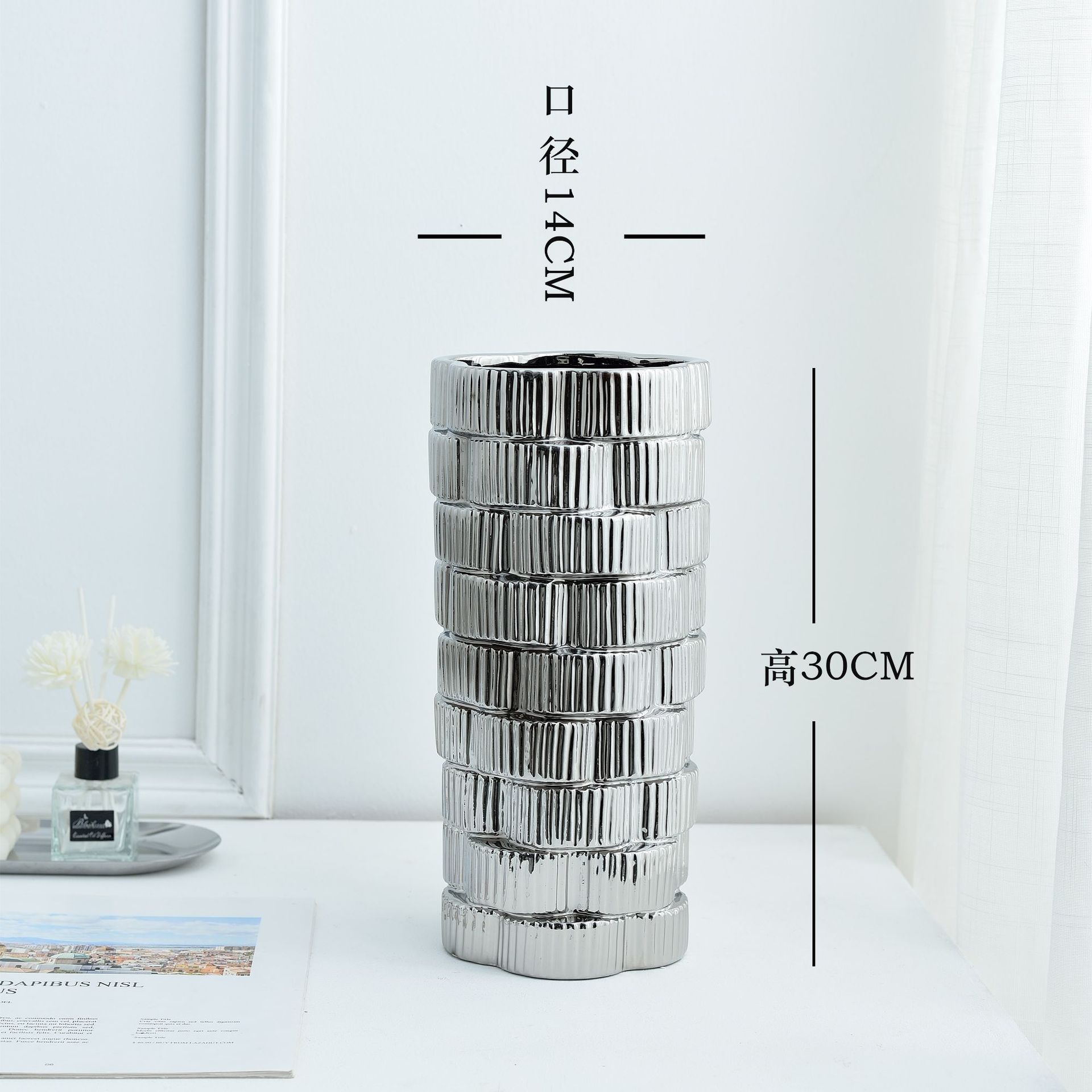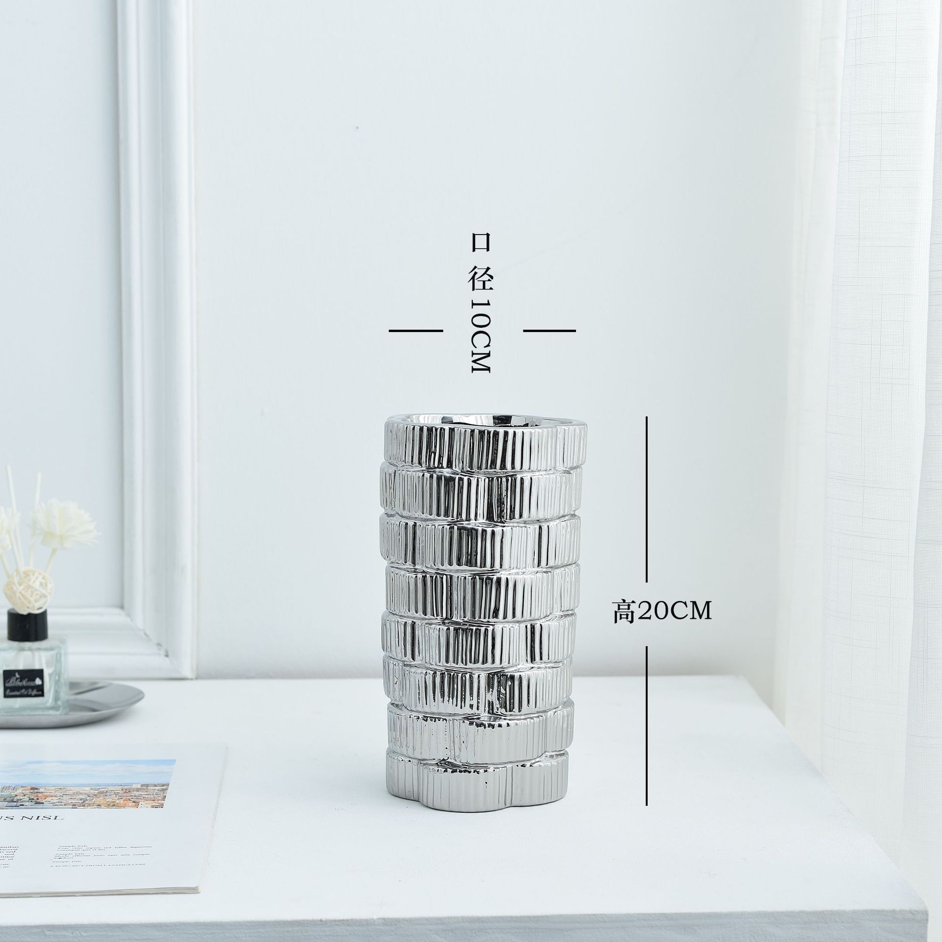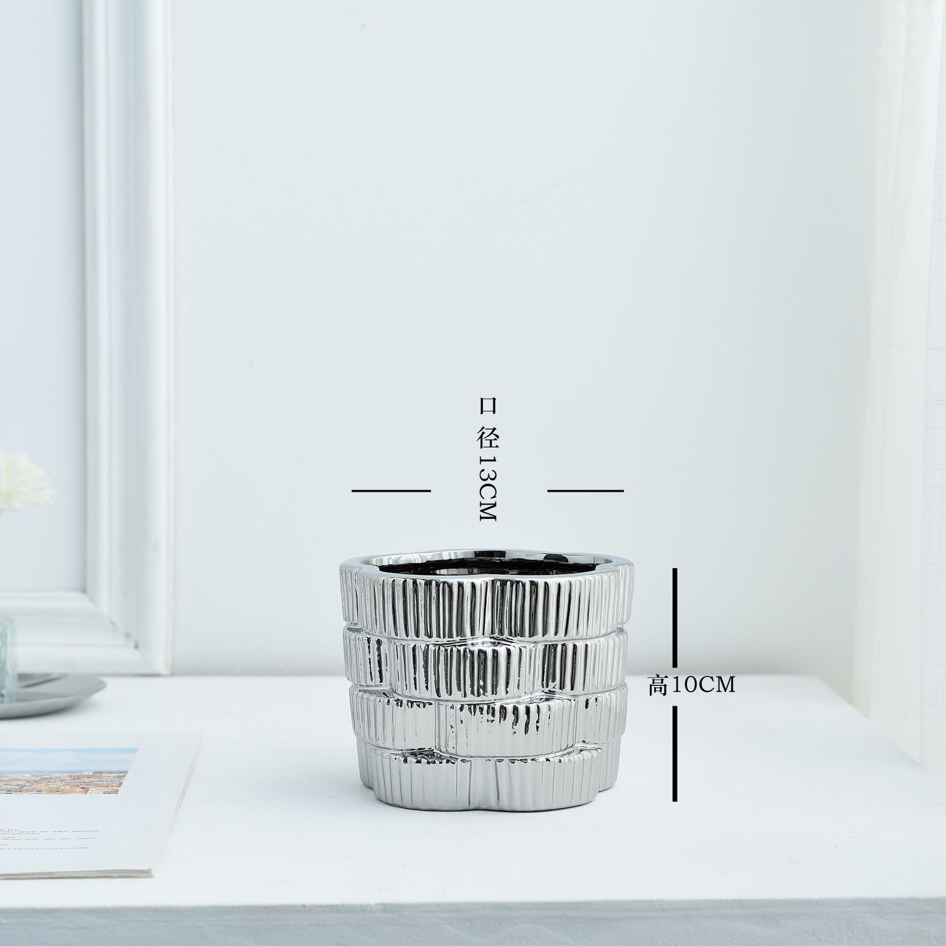 간단한 현대 빛 럭셔리 호텔 전기 도금 금 실버 부드러운 장식 세라믹 꽃병 냄비 장식품스토어 가기