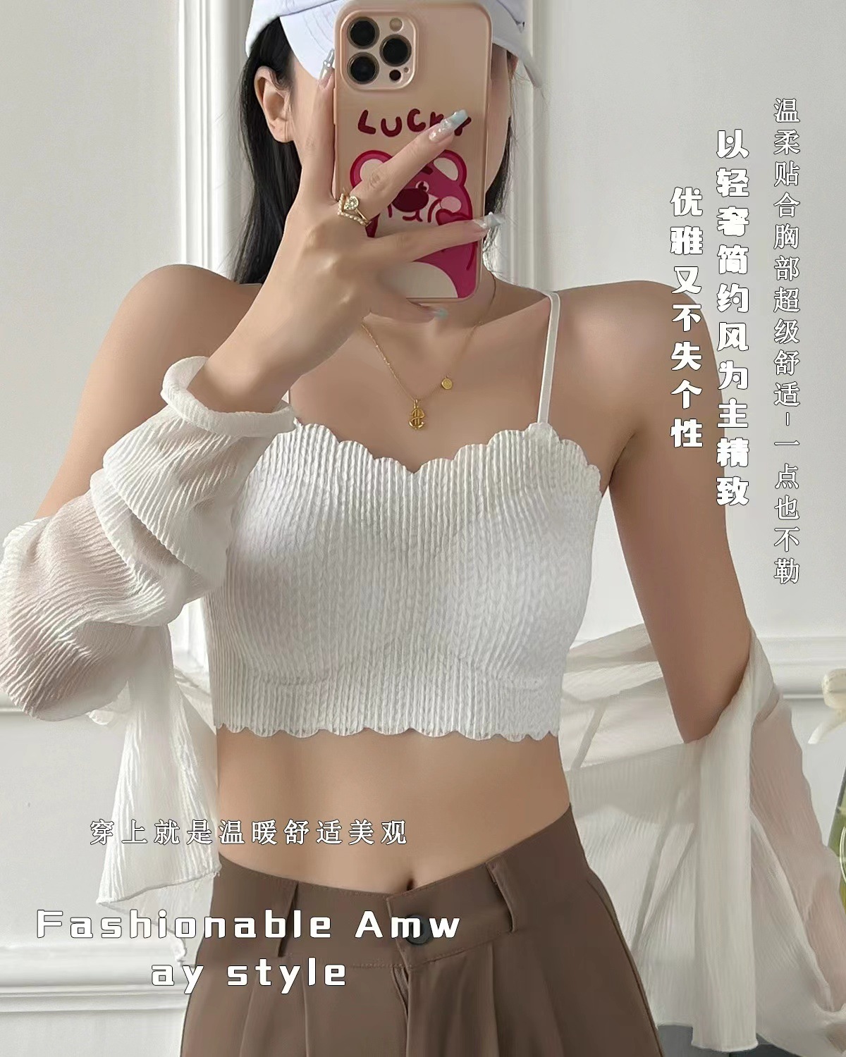 새로운 레이스 섹시한 시어서커 아이스 실크 아름다운 다시 고정 라텍스 컵 조정 가능한 어깨 끈베이스 캐미솔 조끼 여성용스토어 가기