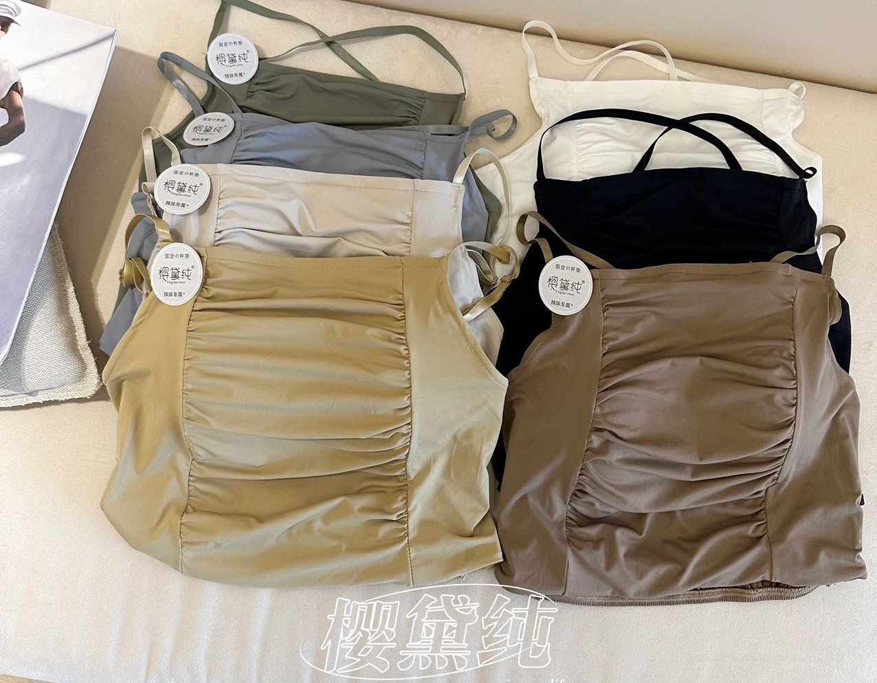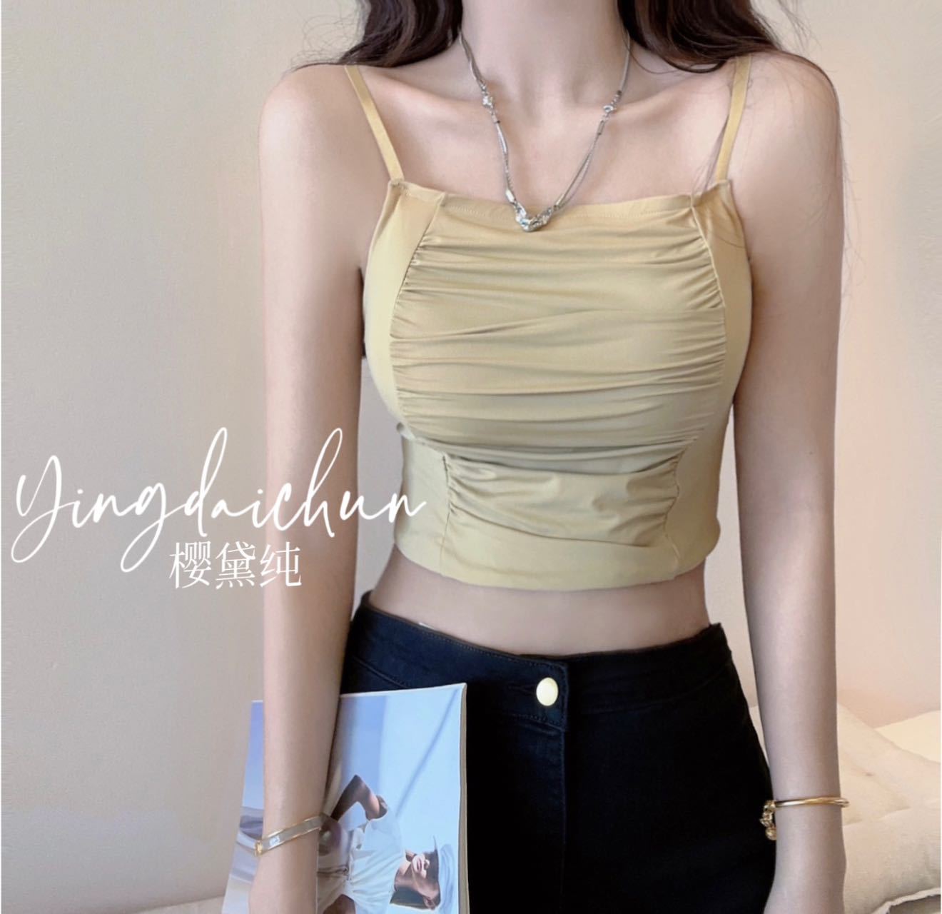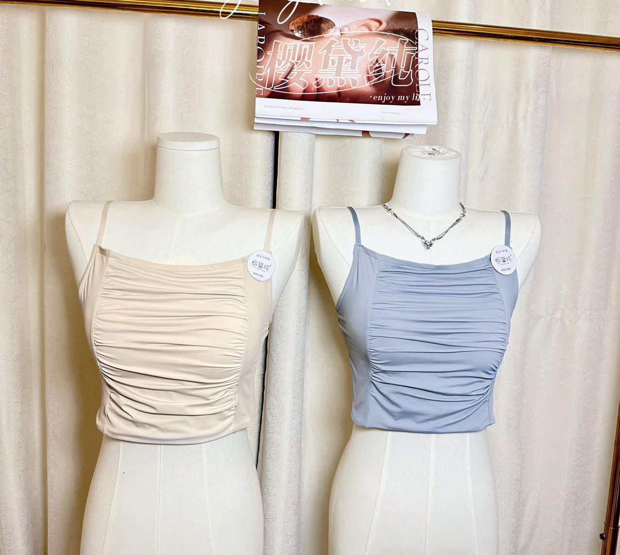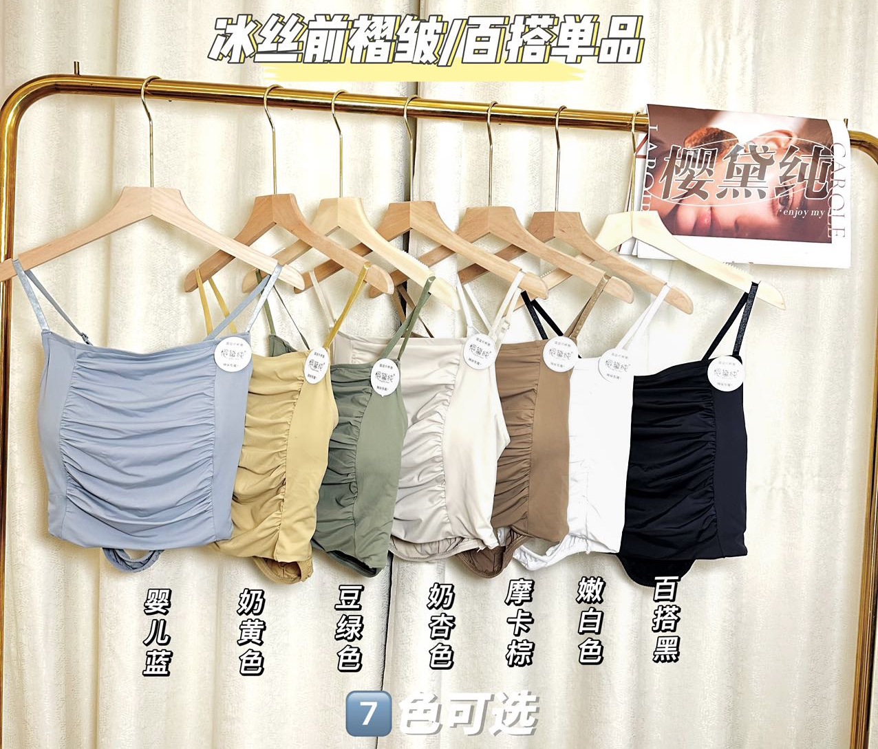 오리지널 아이스 실크 앞면 주름 디자인으로 슬림한 효과를 주는 태국식 끈탑, 가슴 패드가 있는 여성 이너웨어, 외부에서도 착용 가능한 싱글 조끼