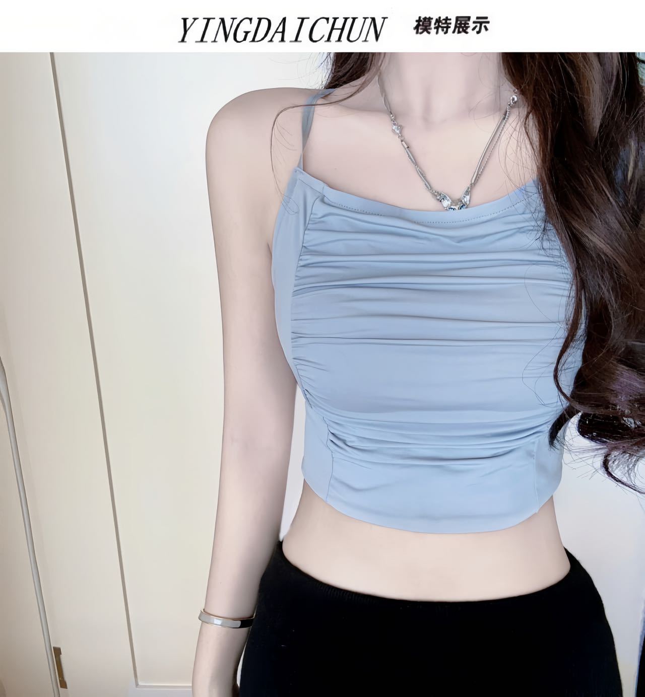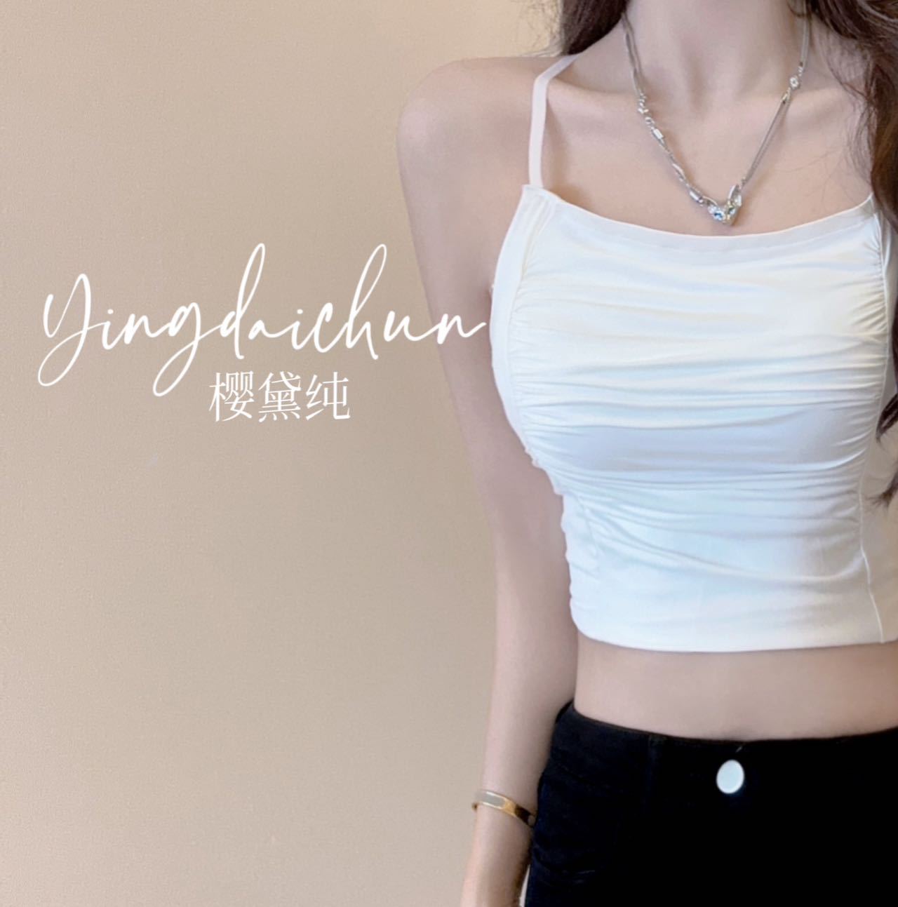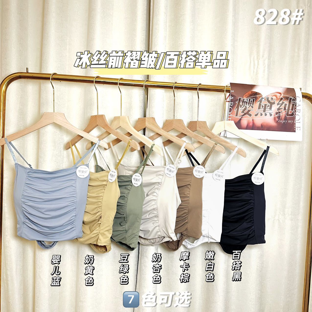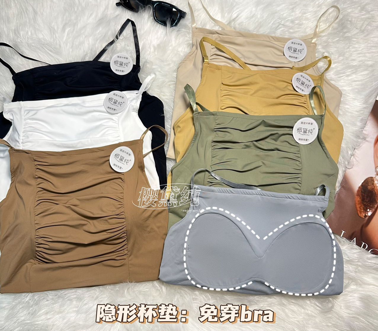 오리지널 아이스 실크 앞면 주름 디자인으로 슬림한 효과를 주는 태국식 끈탑, 가슴 패드가 있는 여성 이너웨어, 외부에서도 착용 가능한 싱글 조끼