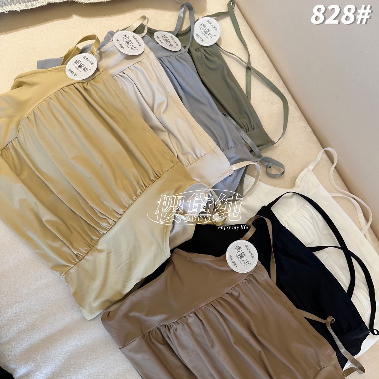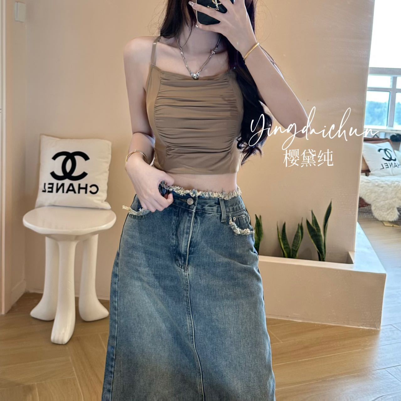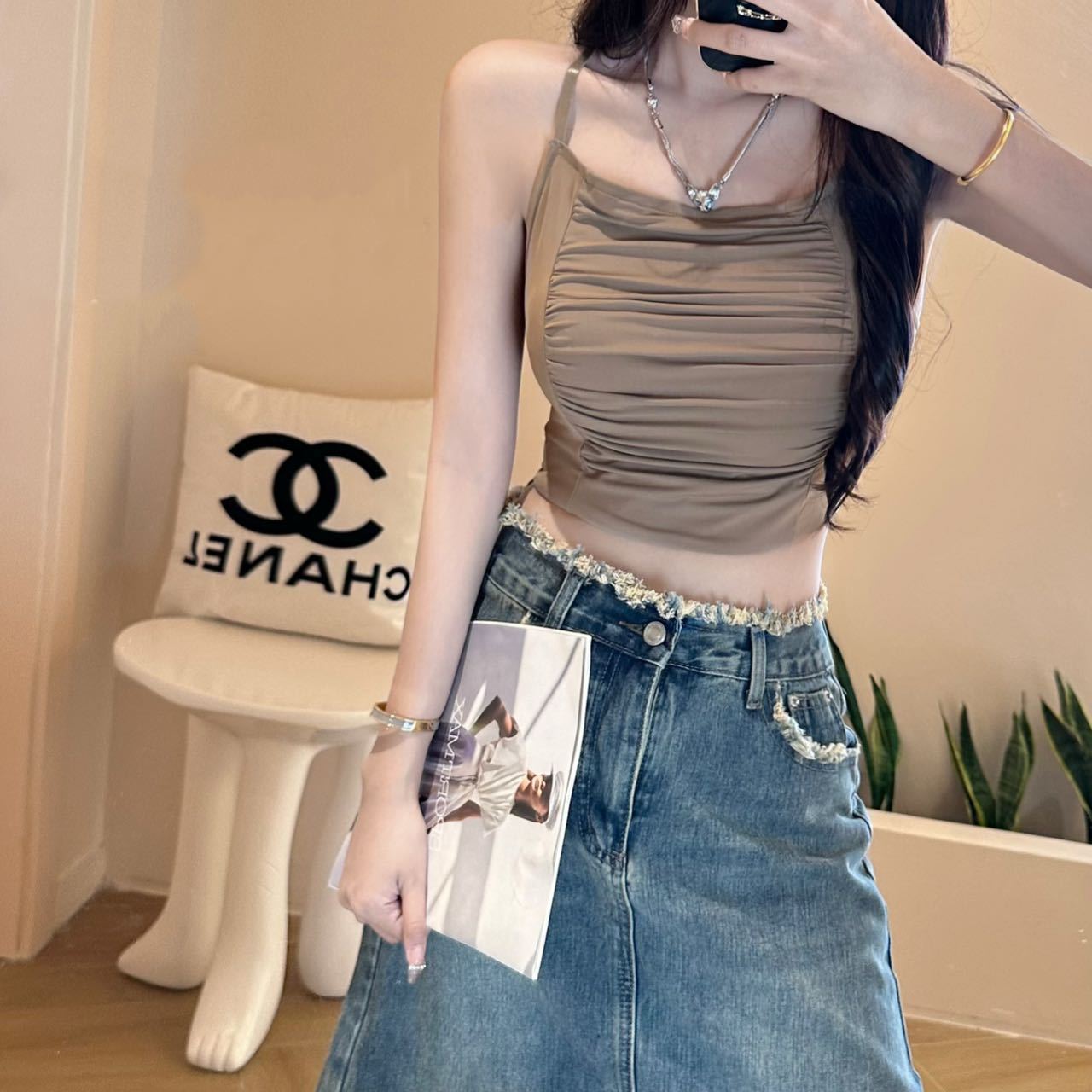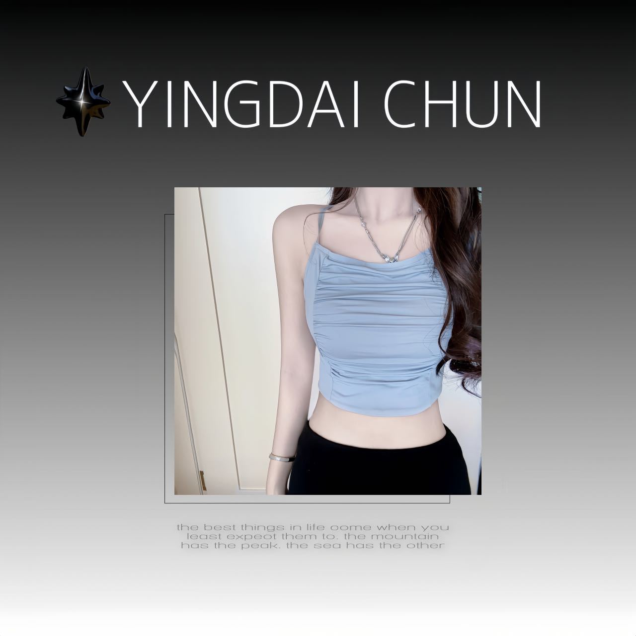 오리지널 아이스 실크 앞면 주름 디자인으로 슬림한 효과를 주는 태국식 끈탑, 가슴 패드가 있는 여성 이너웨어, 외부에서도 착용 가능한 싱글 조끼