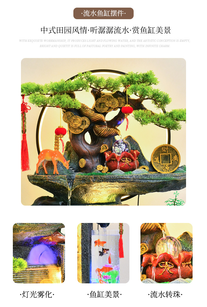 로커리 분수 거실 어항 장식품 물 풍경 사무소 유수 복 만들기 풍수 바퀴 순환 물 물고기 연못스토어 가기