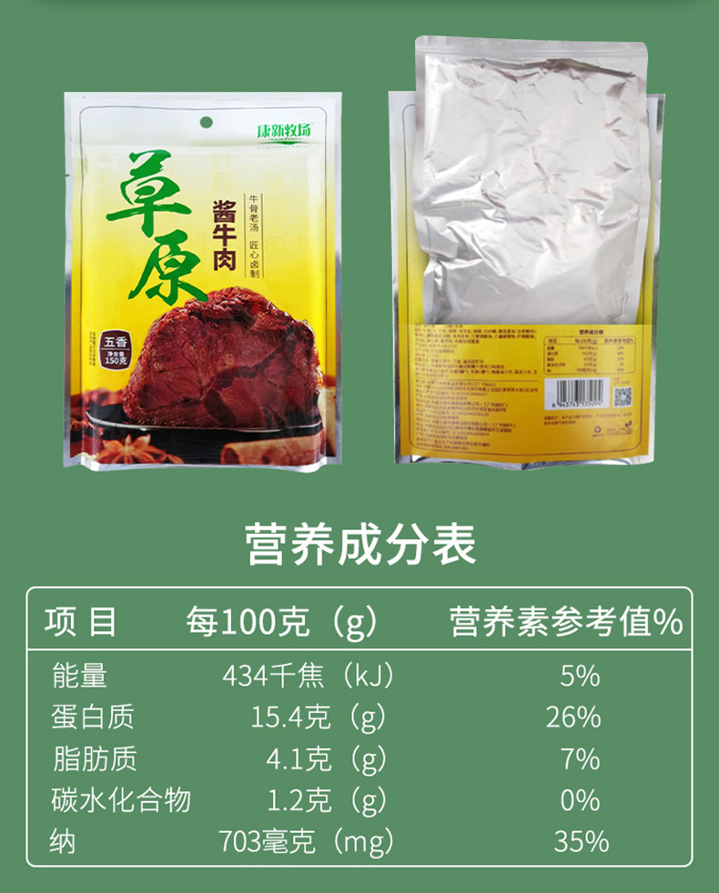 Kangxin Ranch 소고기 진공 조리 식품 150g 초원 조림 쇠고기 내몽고 특산 순수 쇠고기 바로 먹을 수 있는 식사 대체품