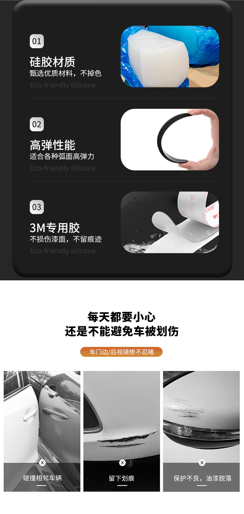 실리콘 도어 충돌 방지 스트립 자동차 백미러 충돌 방지 실리콘 바디 보호 스티커 도어 스크래치 방지 고무 스트립