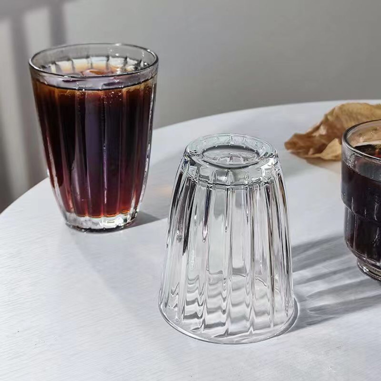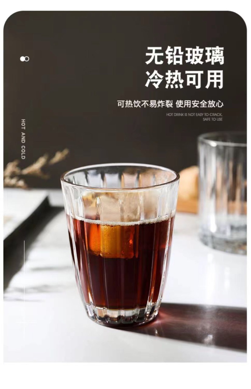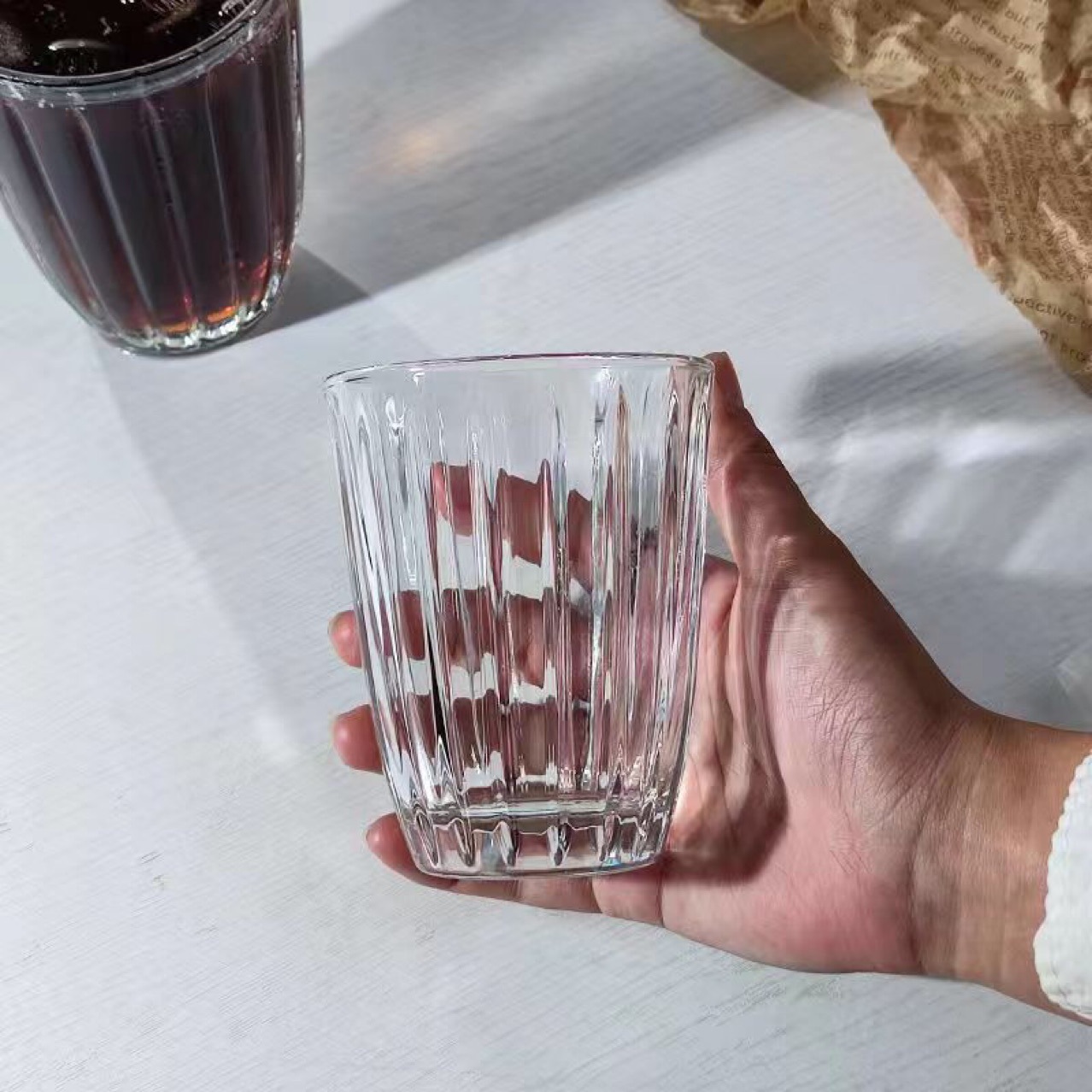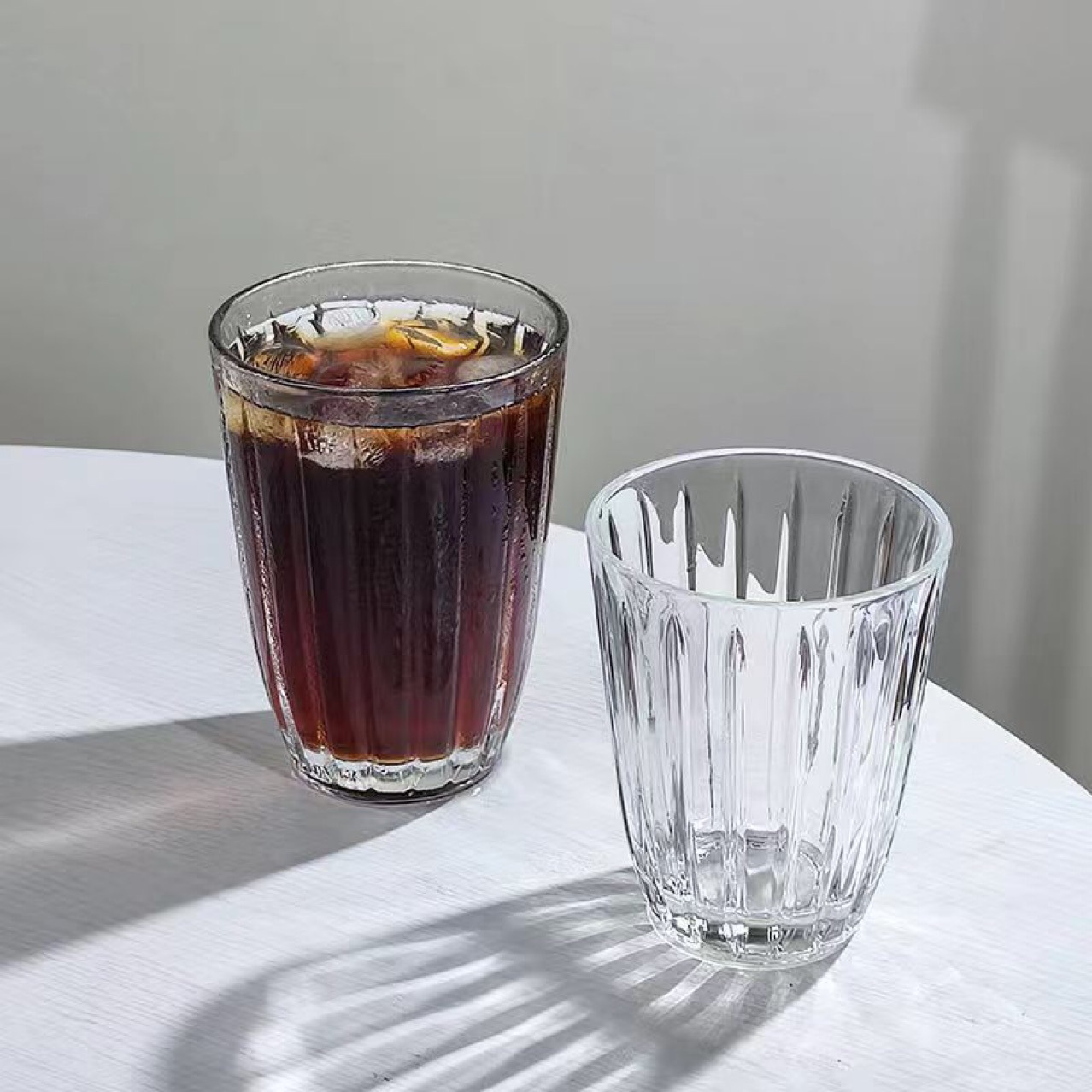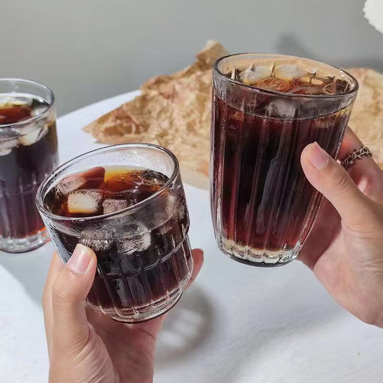 인 카페 빈티지 세로 줄무늬 유리 아이스 아메리칸 커피 컵 단일 제품 음료 컵 세척 컵 구강 세척 컵