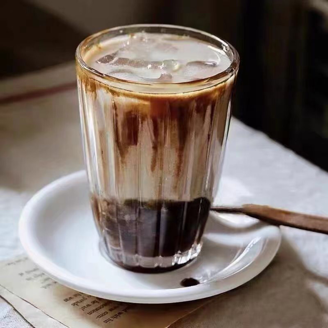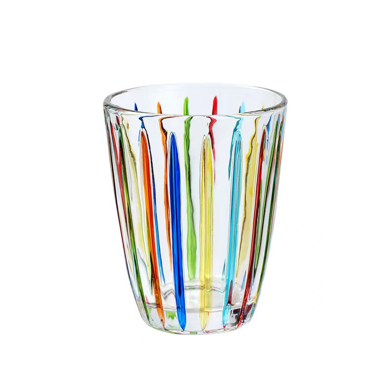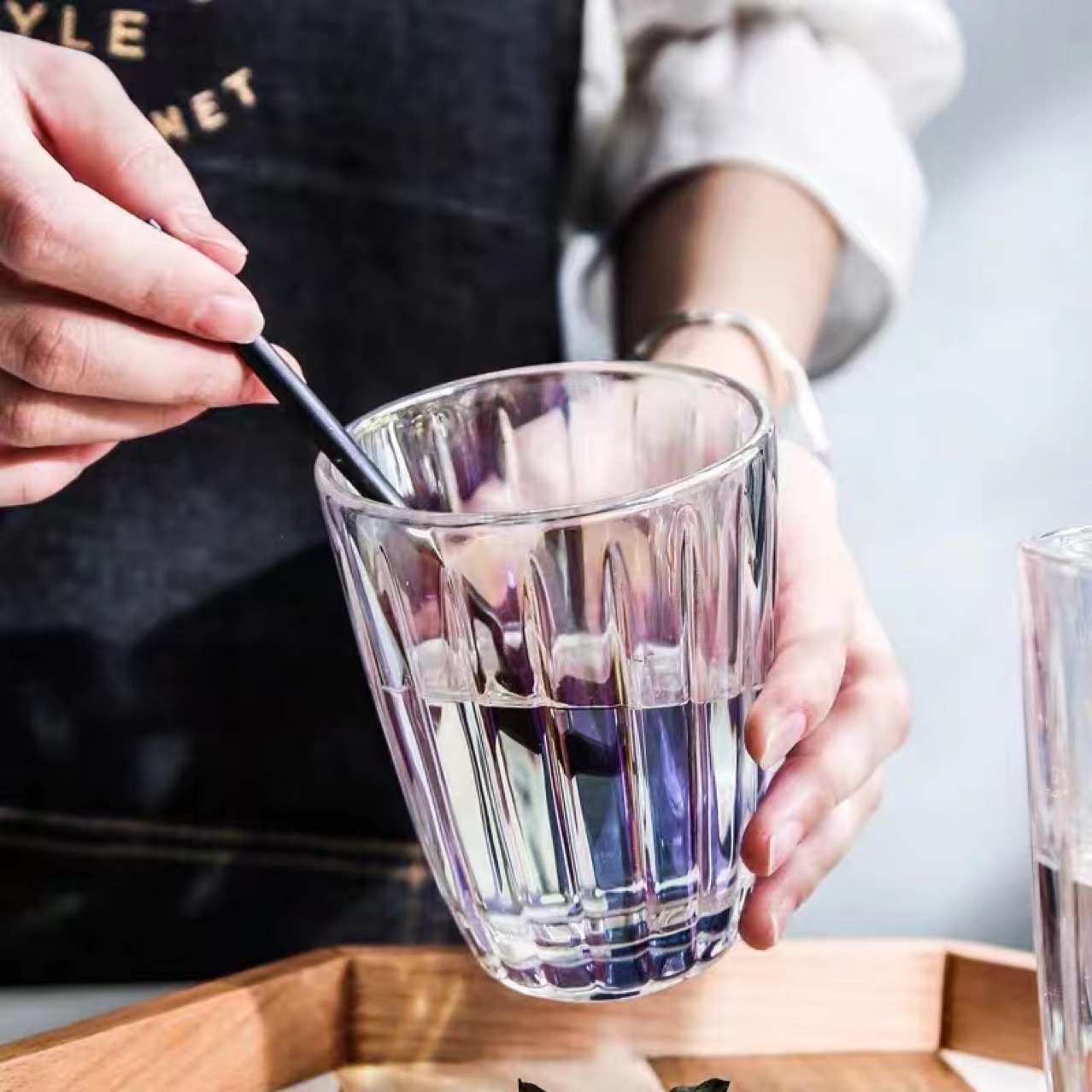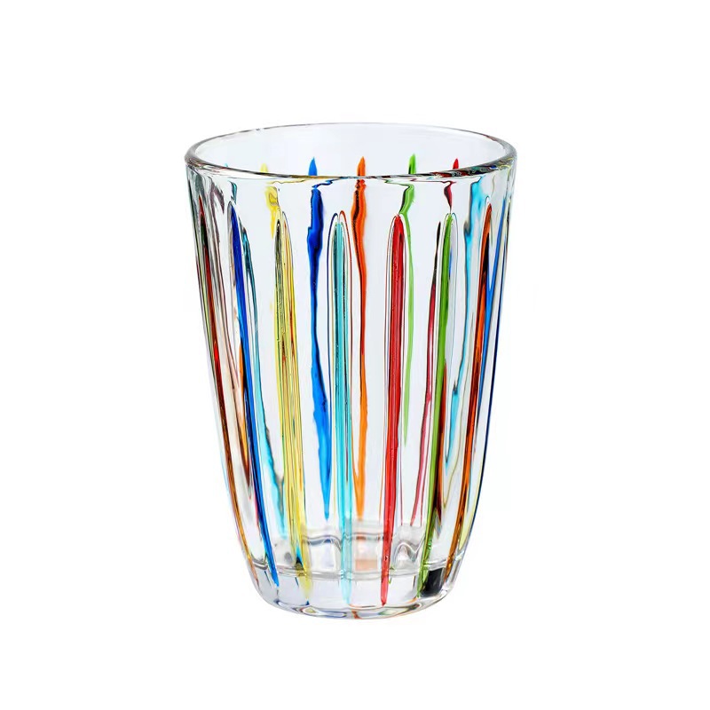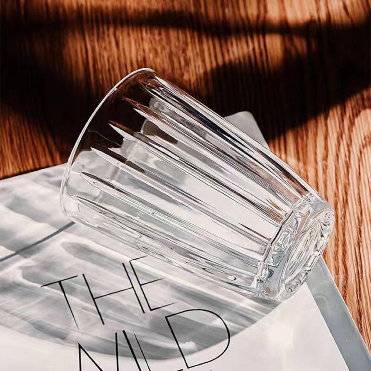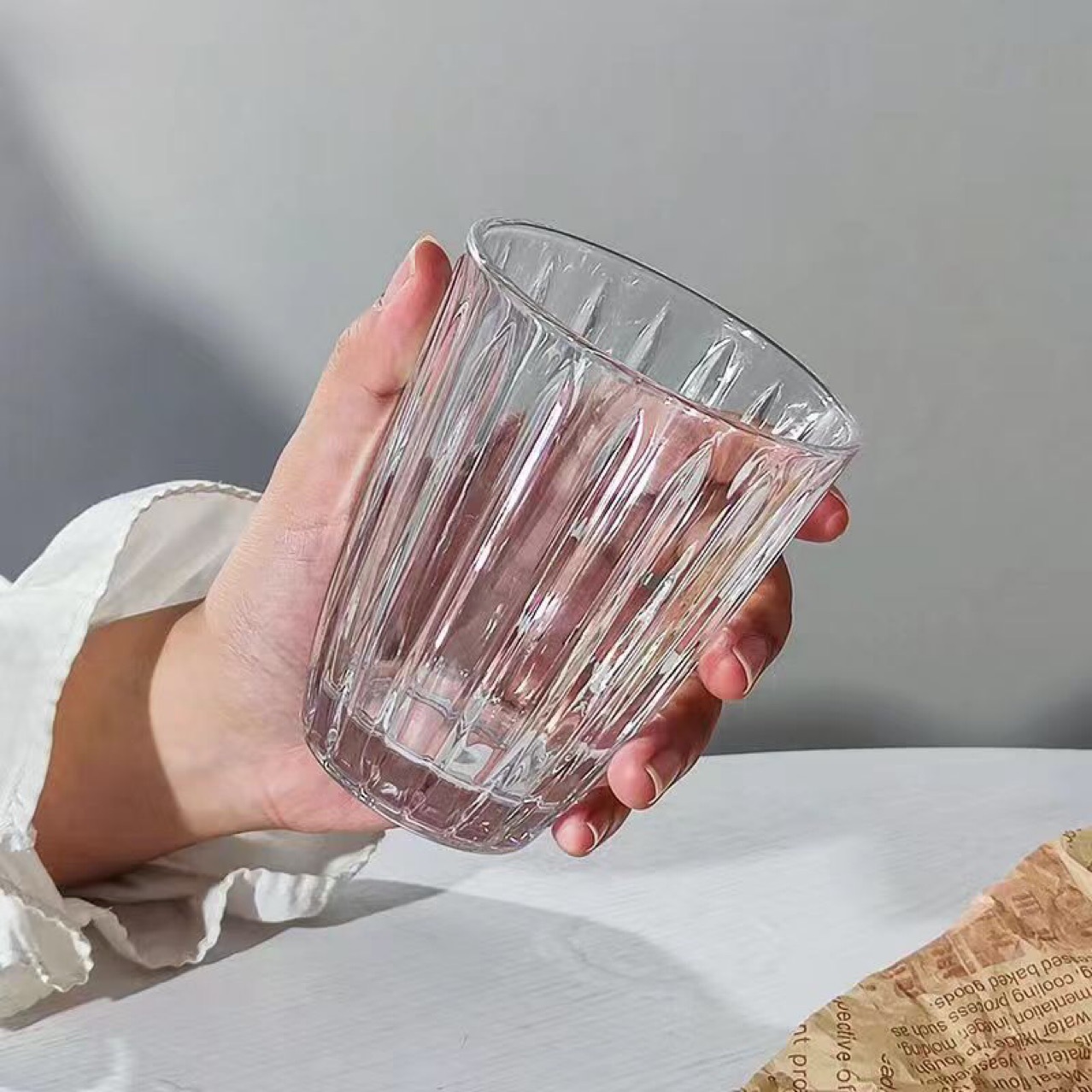 인 카페 빈티지 세로 줄무늬 유리 아이스 아메리칸 커피 컵 단일 제품 음료 컵 세척 컵 구강 세척 컵