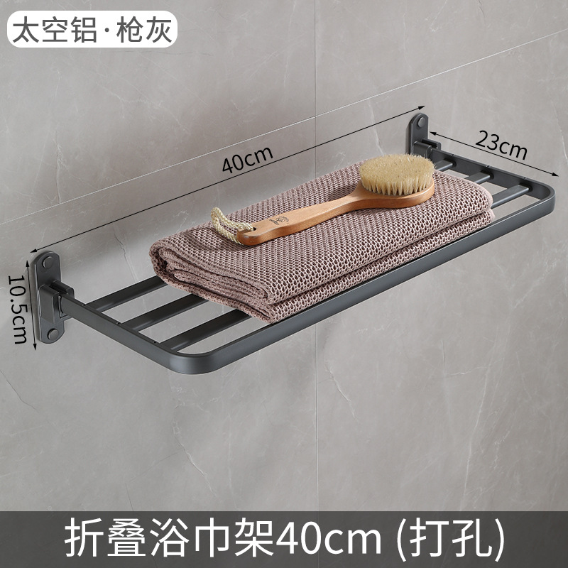 블랙 욕실 펀치 프리 접이식 싱글 레이어 타월 랙 벽걸이 공간 알루미늄 욕실 타월 랙 1 층 단순스토어 가기