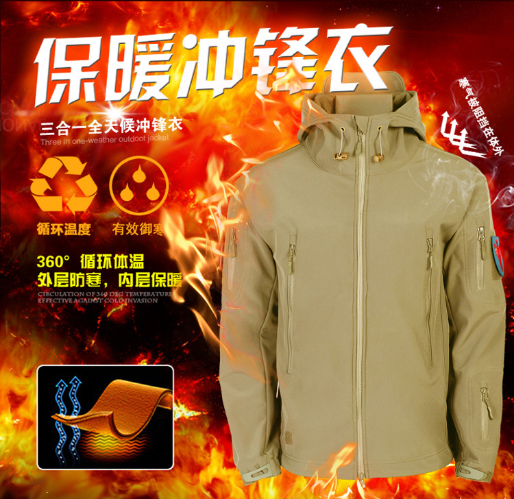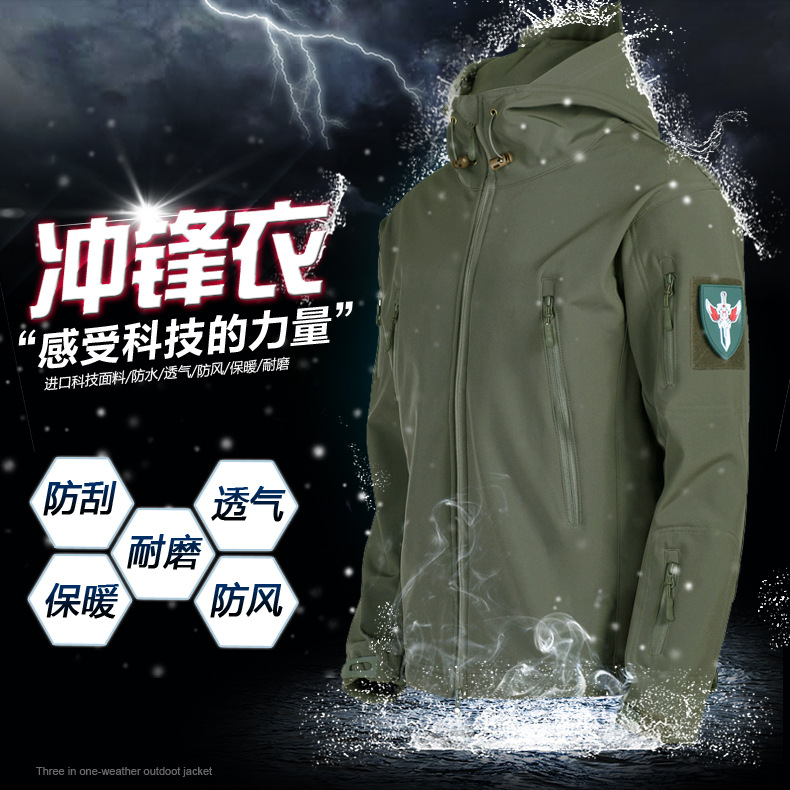 상어 피부 소프트 쉘 재킷 야외 남자의 전술 재킷 군사 팬 세트 M65 윈드브레이커 방탄 재킷