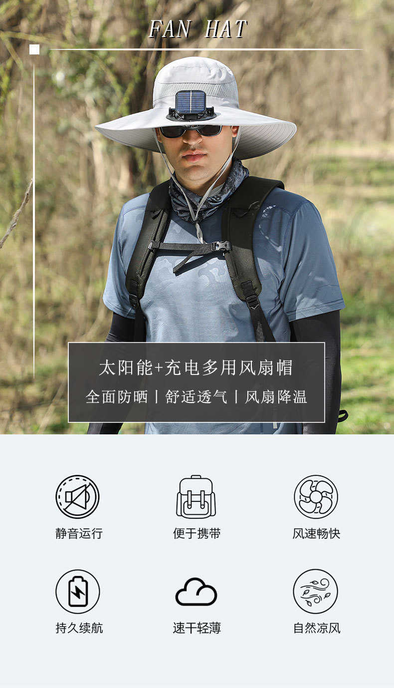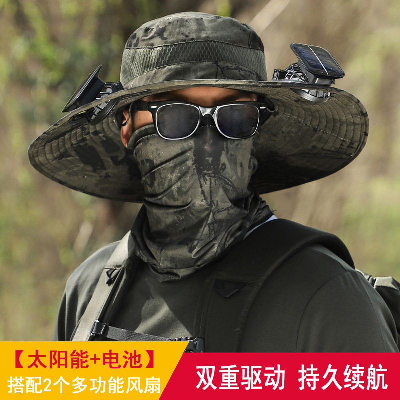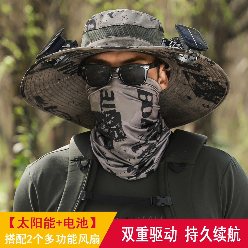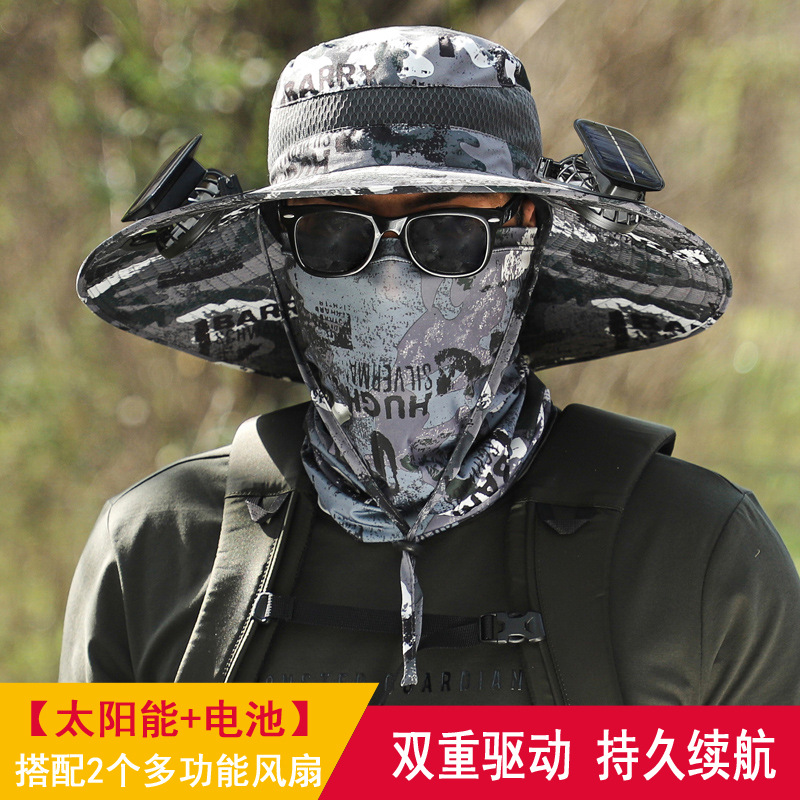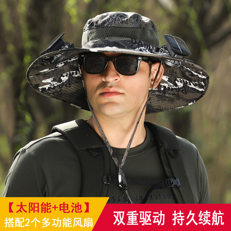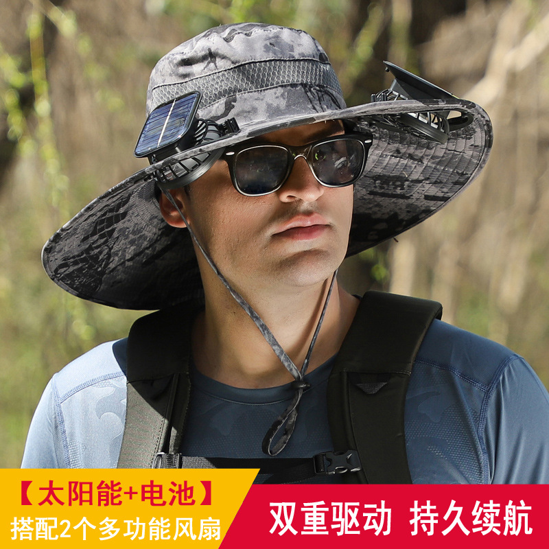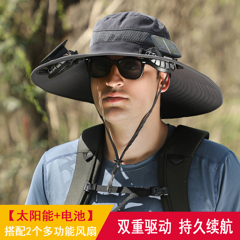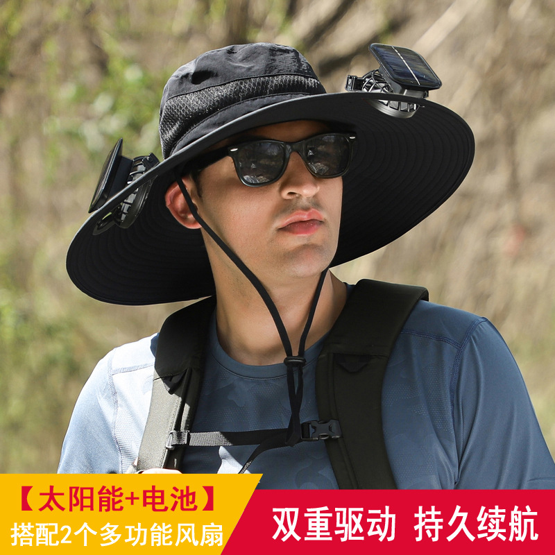 긴 배터리 수명 리튬 배터리 팬 태양 충전 큰 바람 여름 자외선 차단제 캡 따라 남자 양산 어부 캡 속건스토어 가기