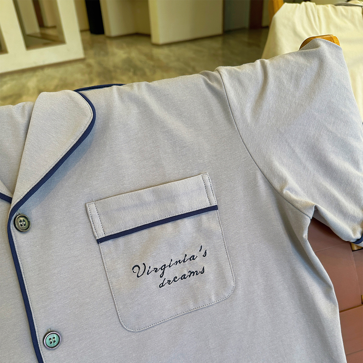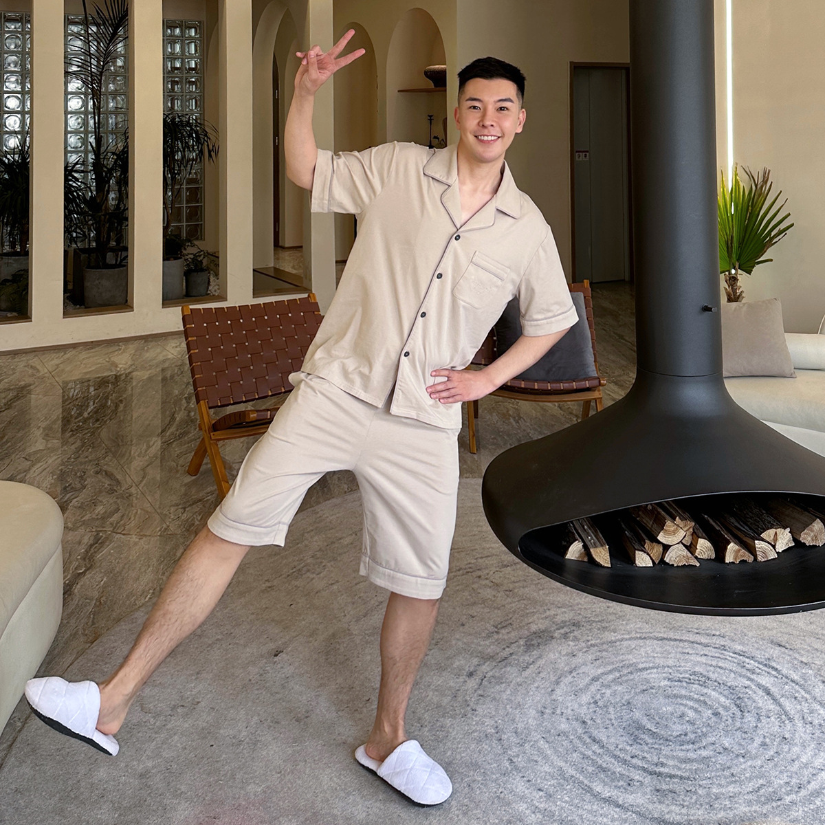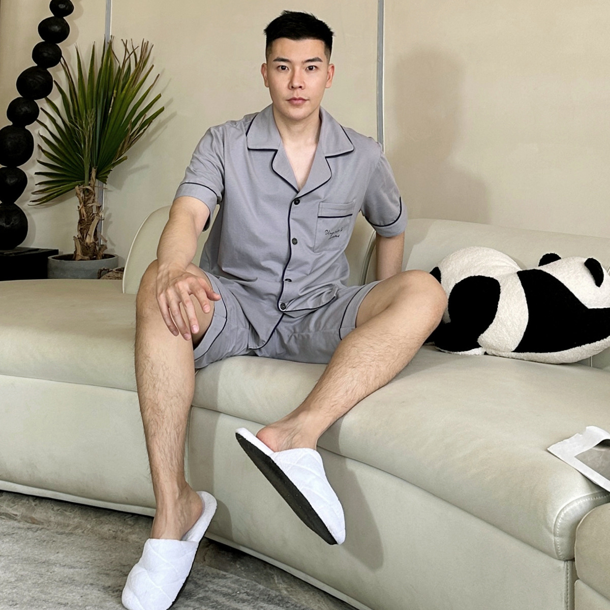 2023 새로운 면 남성 잠옷 반팔 반바지 세트 면 가정 의류 봄과 가을 도매 머리카락의 세대스토어 가기