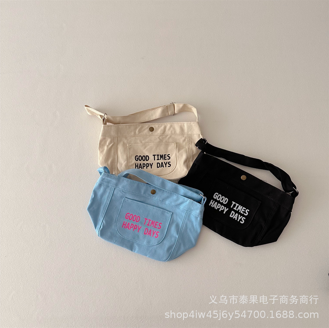 아동용 뉴 캔버스 백 소년 소녀 한국식 올 매치 심플 캐주얼 레터 크로스바디 숄더백 부담 감소 보관 가방스토어 가기