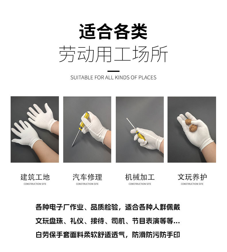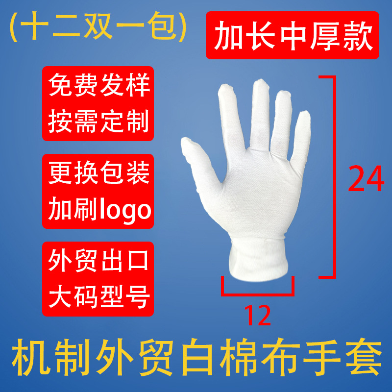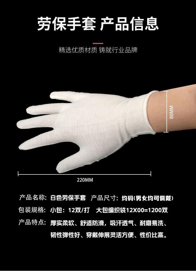 공장 도매 수출용 흰색 장갑 순면 작업 장갑 안전 장갑 예식 장갑 문화 장난감 장갑 먼지 없는 정전기 방지
