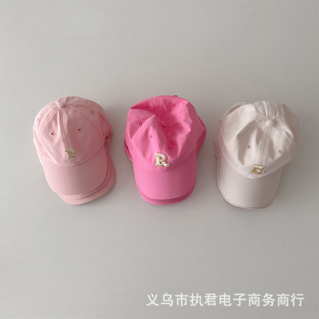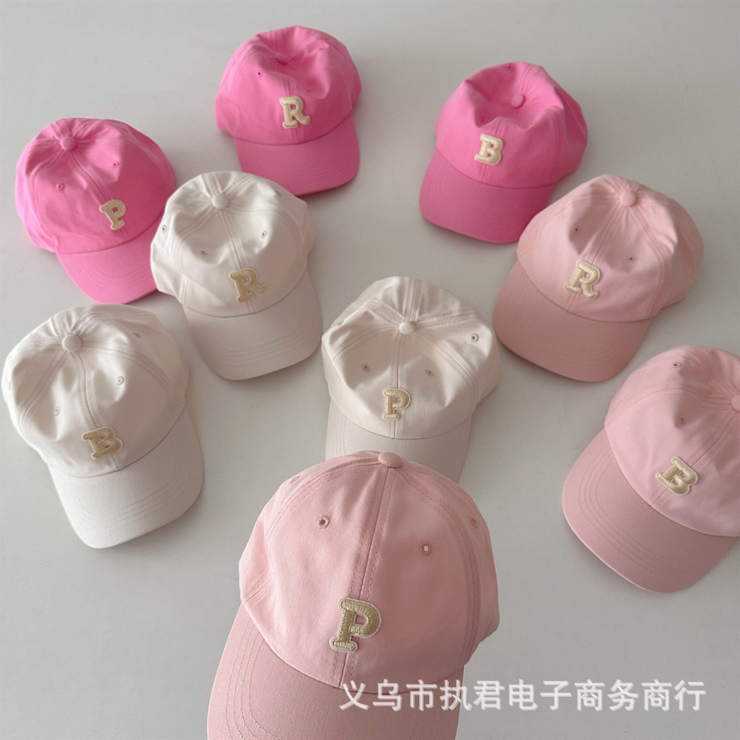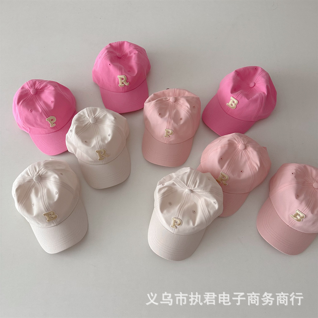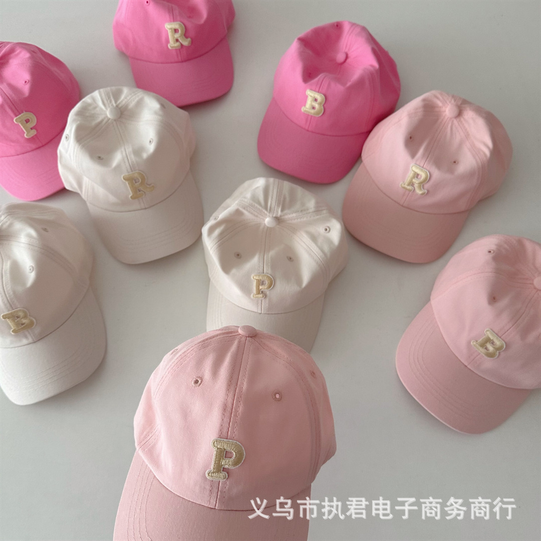 어린이 모자 봄과 가을 얇은 서양 스타일 간단한 편지 여름 장미 핑크 소년과 소녀 양산 곡선 처미 야구 모자