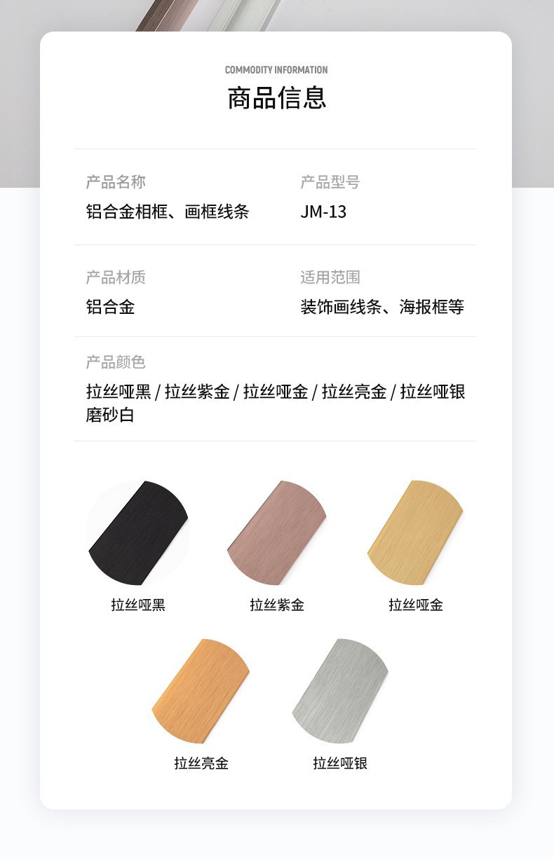 Jumei Aluminium 도매 알루미늄 합금 광고 디스플레이 룸 액자 사업 라이센스 프레임 베젤 벽걸이 알루미늄 합금 라인