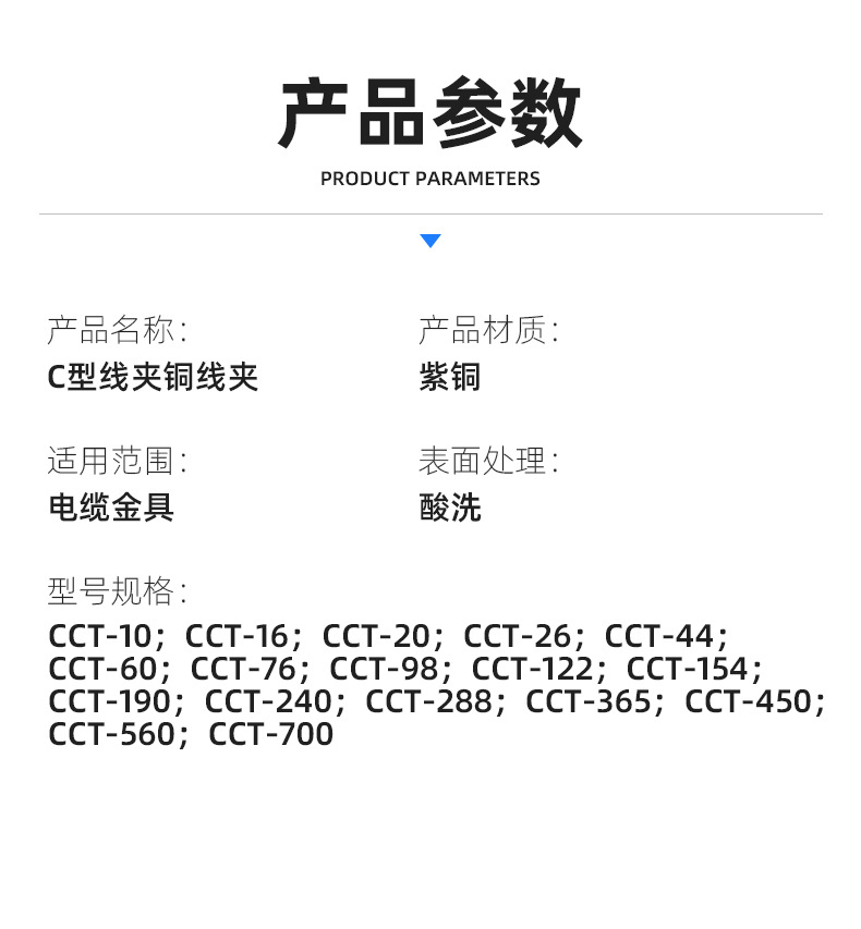 제조업체는 CCT 와이어 클립, 두꺼운 구리 C형 와이어 클립, 케이블 분기 연결부, 병렬 연결기, 와이어 클립을 공급합니다.스토어 가기