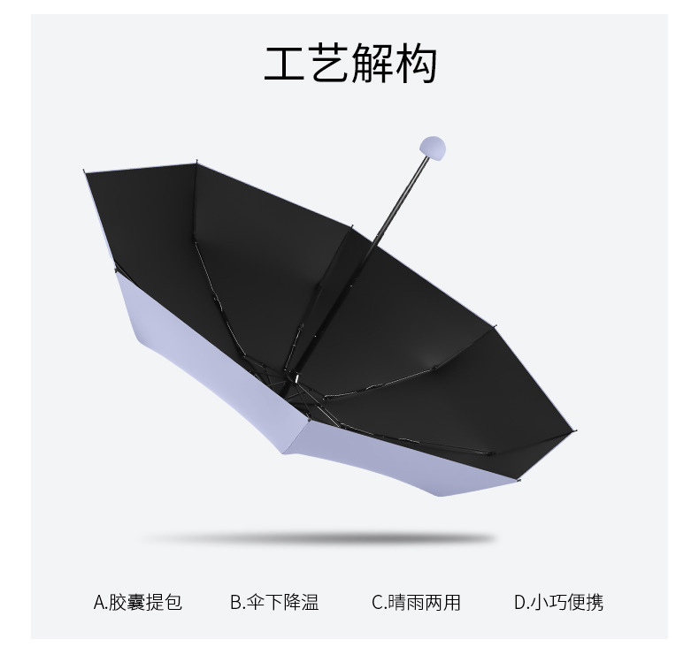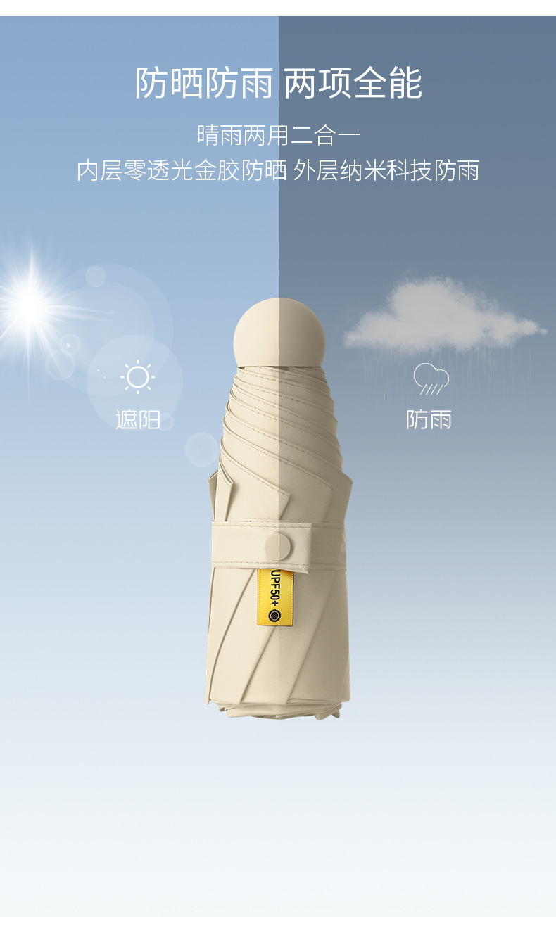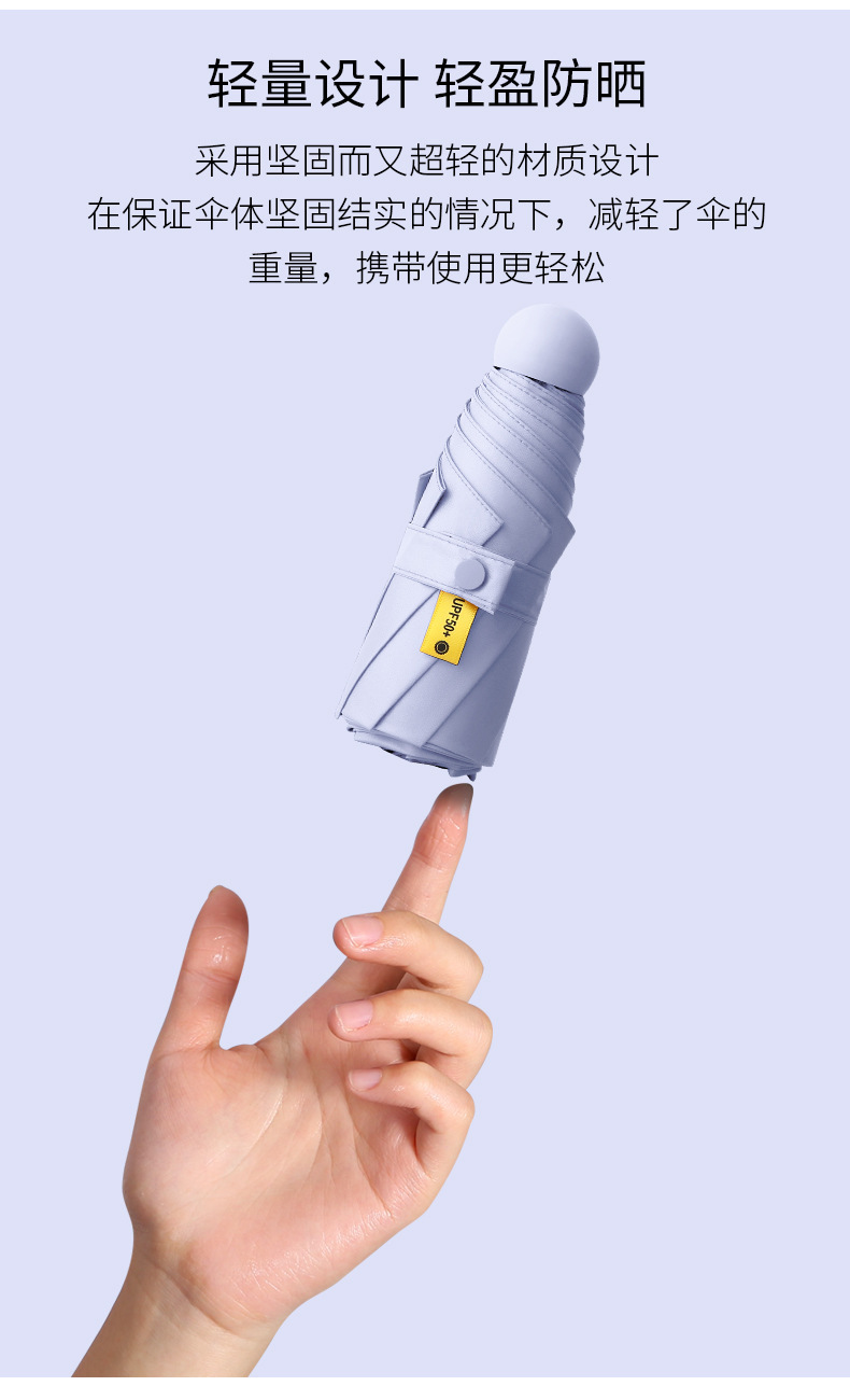 50% 접힌 6 뼈 우산 휴대용 캡슐 우산 자외선 보호 맑음 우산 두꺼운 검은 접착제 선 스크린 우산 포켓 울트라 라이트 우산