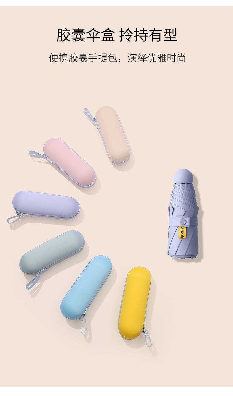 50% 접힌 6 뼈 우산 휴대용 캡슐 우산 자외선 보호 맑음 우산 두꺼운 검은 접착제 선 스크린 우산 포켓 울트라 라이트 우산스토어 가기