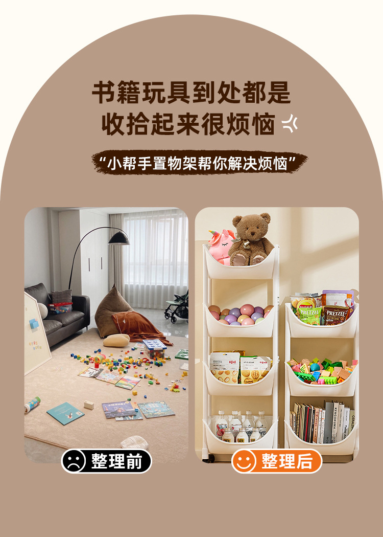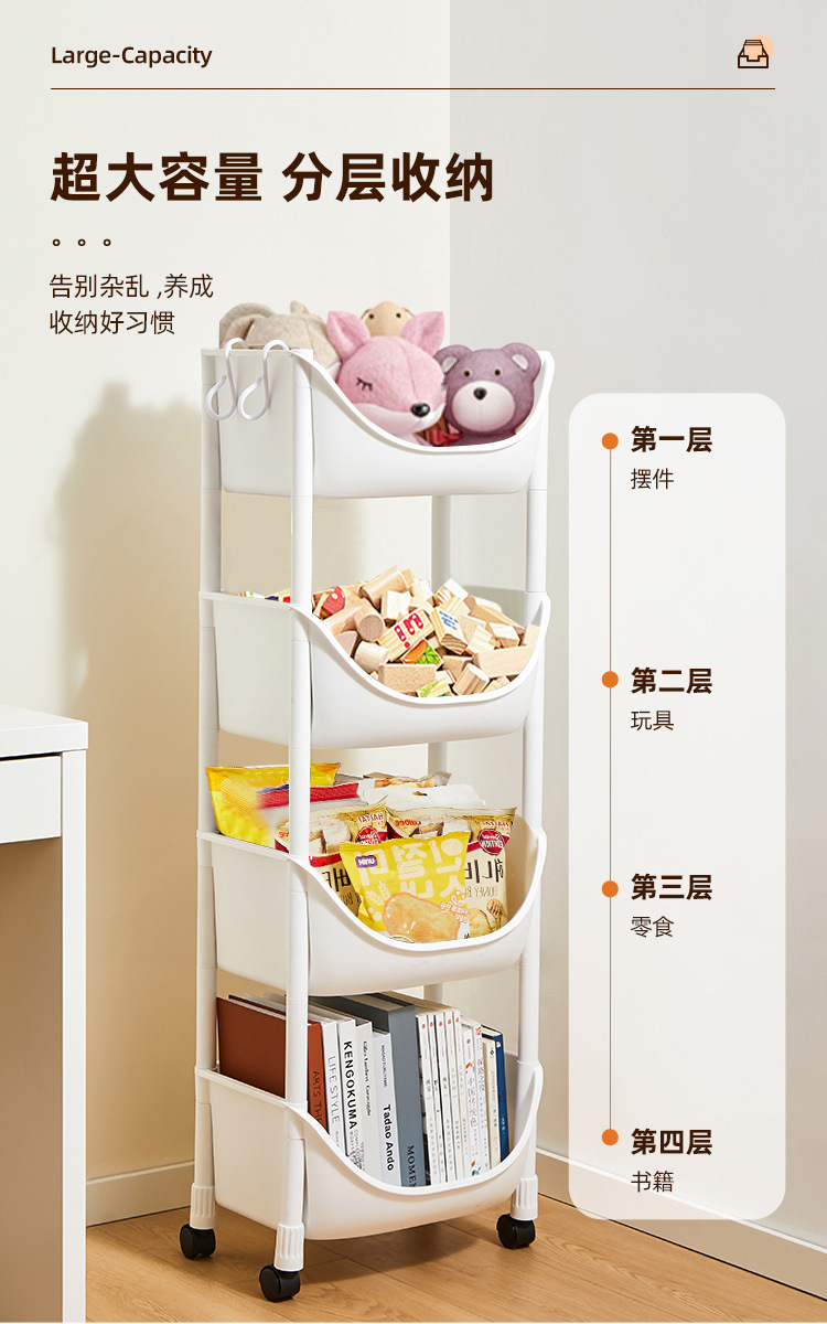 이동식 책장 보관 랙 어린이 장난감 보관 랙 바퀴 달린 트롤리가있는 다층 가정용 간단한 바닥 책장