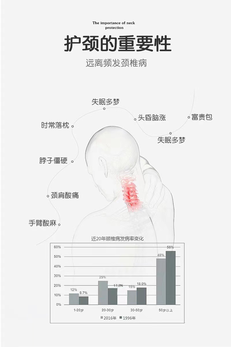🔵设计理念:根据人体工程学设计5分区,满足多种睡姿的颈部承托, 平面可自由睡,肩颈兼顾,翻身不落枕,圆柱面可抬高头部,很适合颈椎曲度偏直人群~