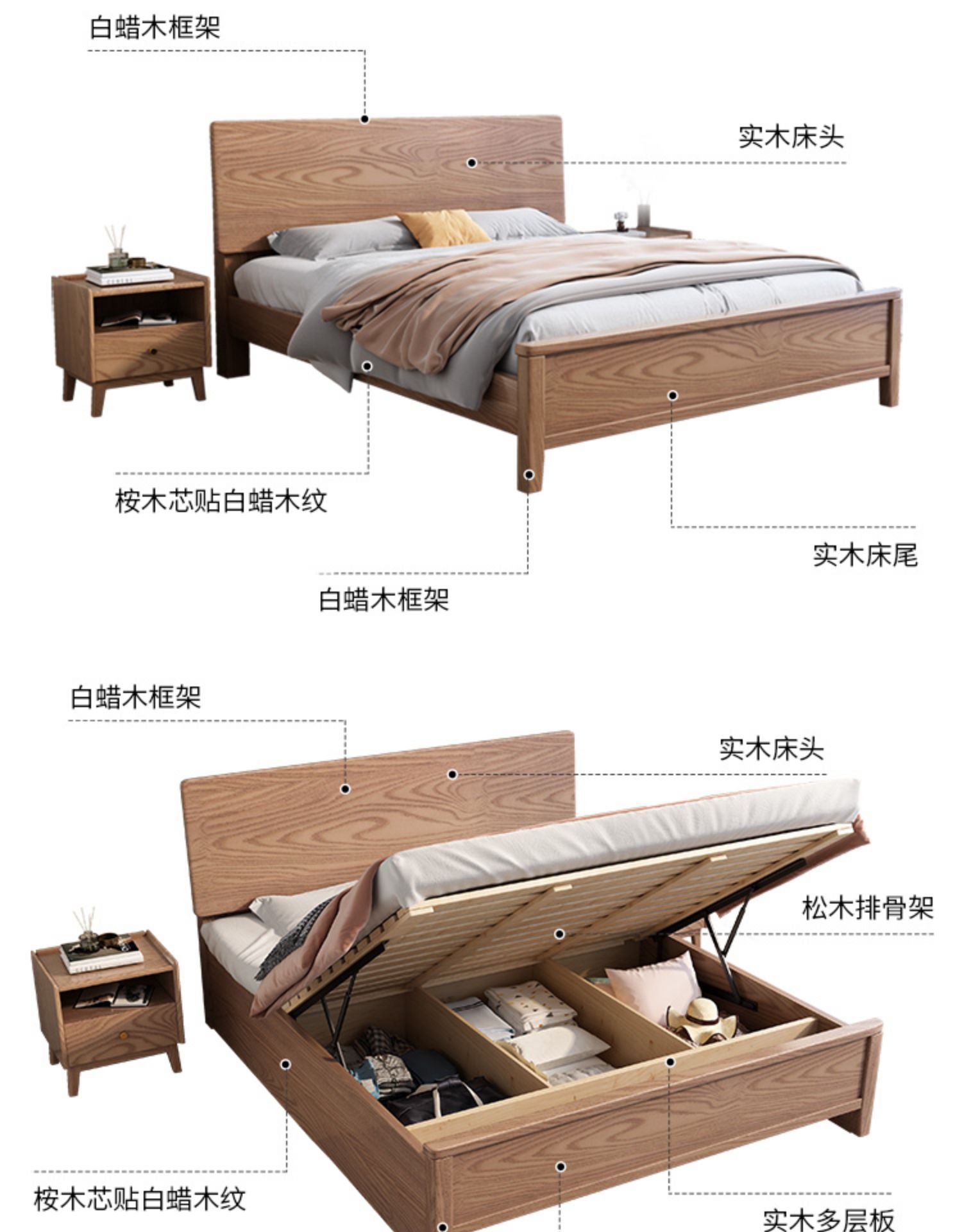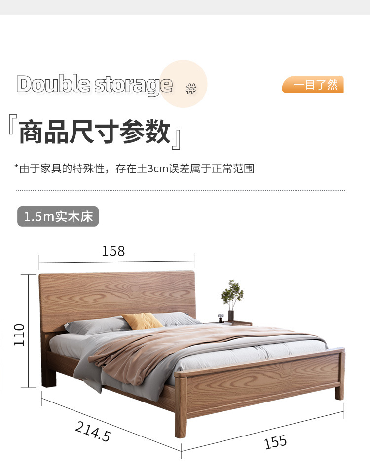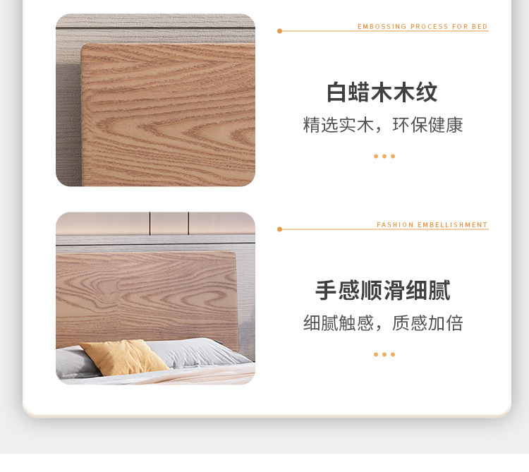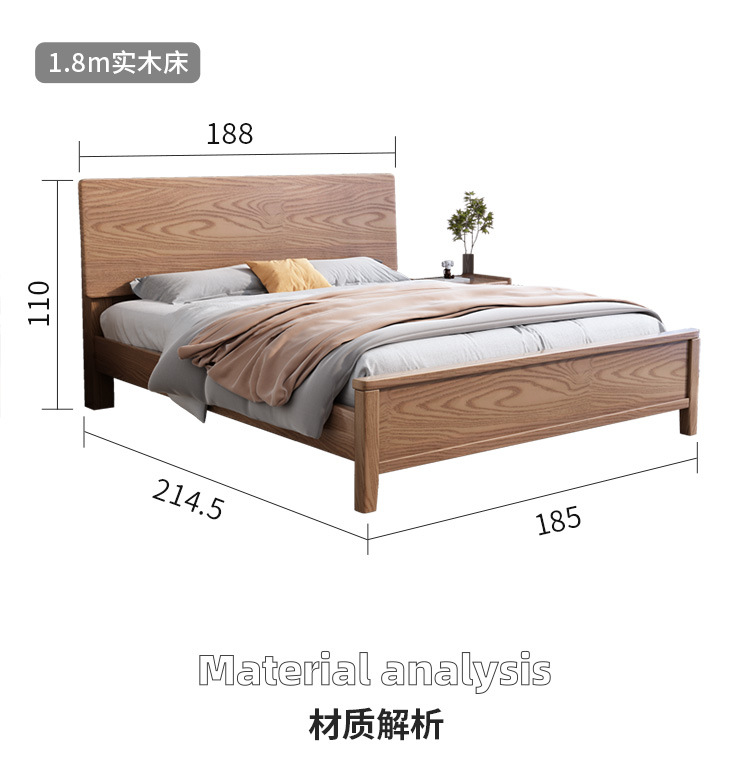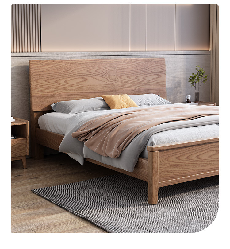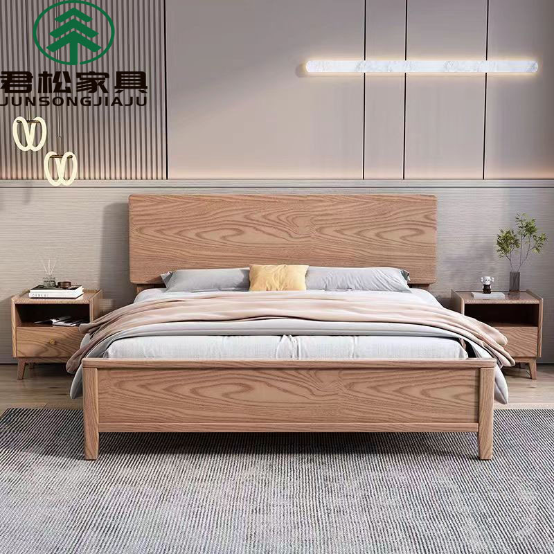 북유럽산 화이트 애쉬 원목 침대 1.8m 더블 침대 1.5 심플 침실 싱글보드 수납 침대 하이박스 수납