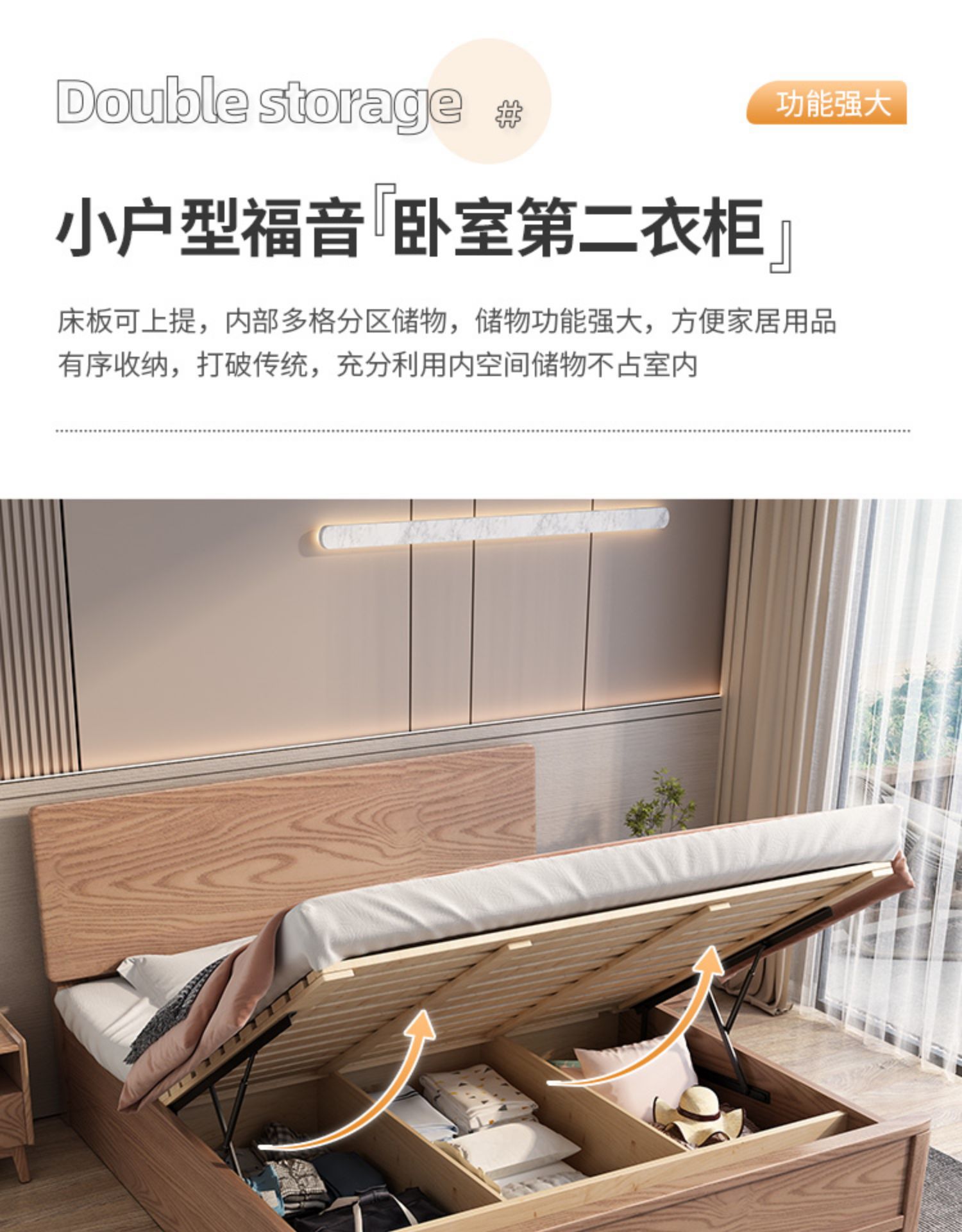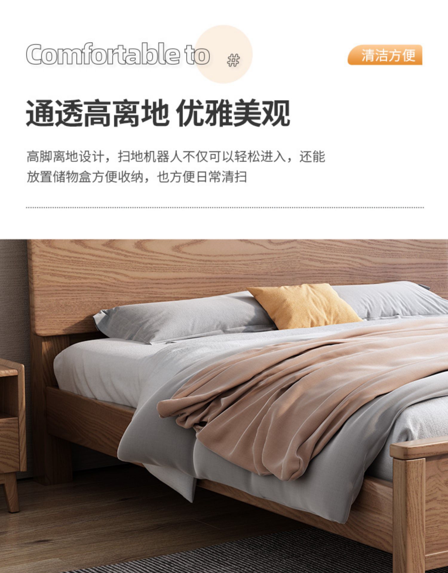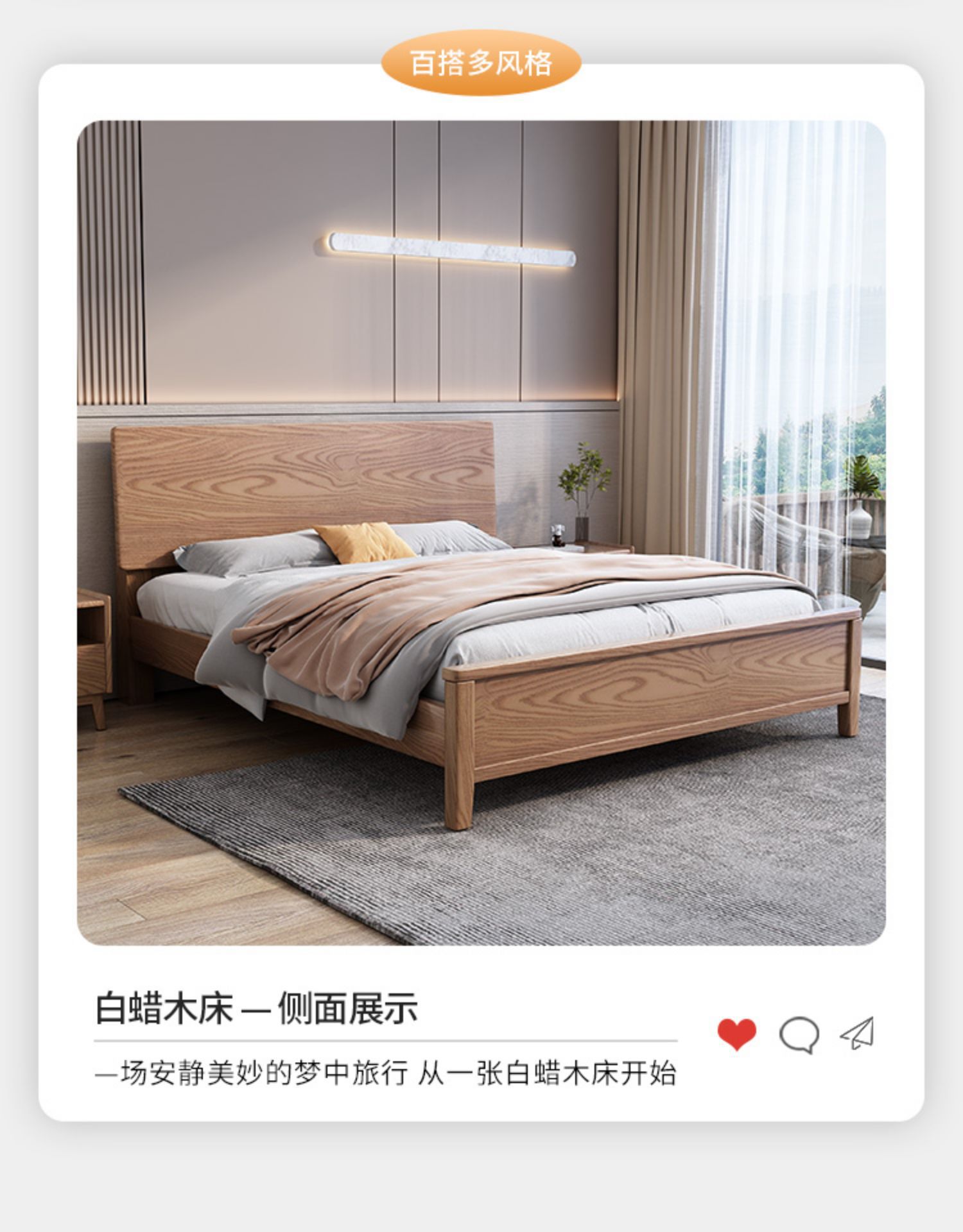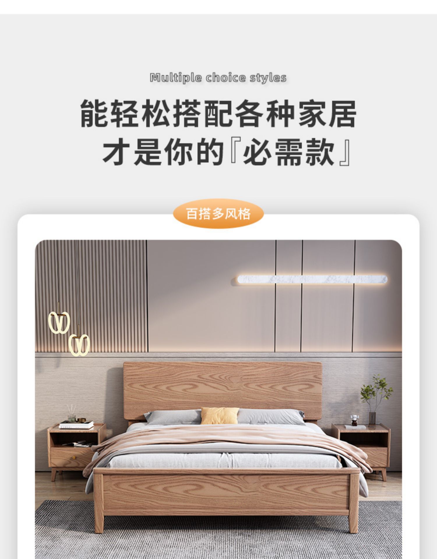 북유럽산 화이트 애쉬 원목 침대 1.8m 더블 침대 1.5 심플 침실 싱글보드 수납 침대 하이박스 수납