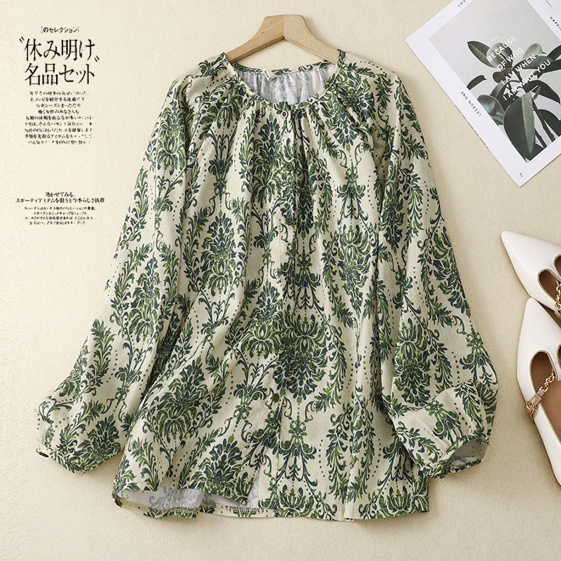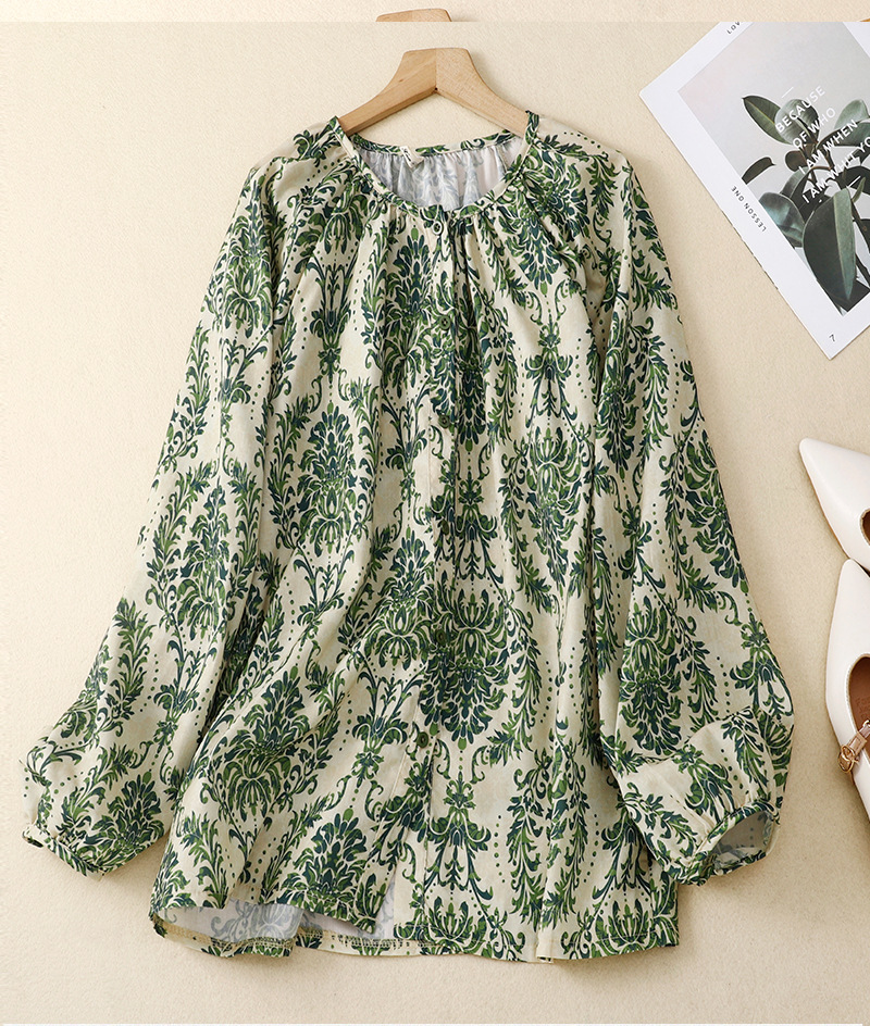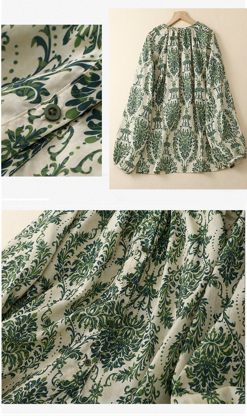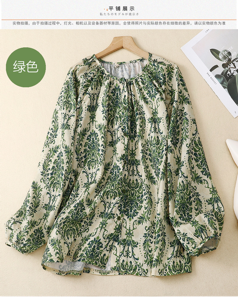 리얼 샷 에어 센스 빈티지 프린트 랜턴 슬리브 쉬폰 셔츠 여성용 느슨한 자외선 차단제 가디건스토어 가기