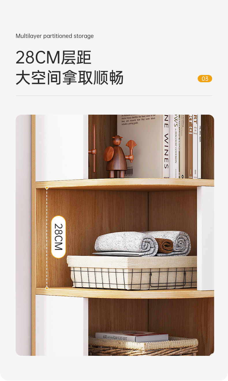 • [넓고 두꺼운 4 층] 목가적 인 오크 색 + 따뜻한 흰색 40*40*118cm