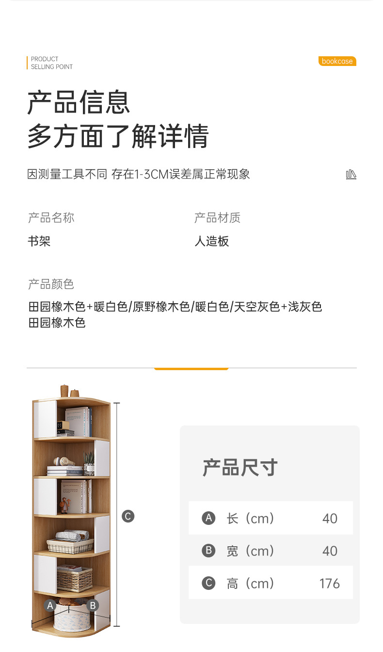 • [넓어지고 두껍게 된 6 층] 목가적 인 오크 색 + 따뜻한 흰색 40*40*176cm