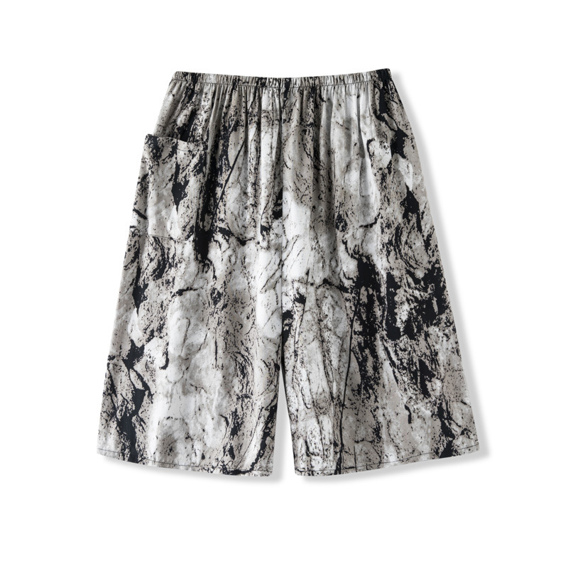 여름 남자의 면 실크 파자마 바지 얇은 인조 면 반바지 플러스 사이즈 비치 바지 느슨한 바지 겉옷 홈 바지