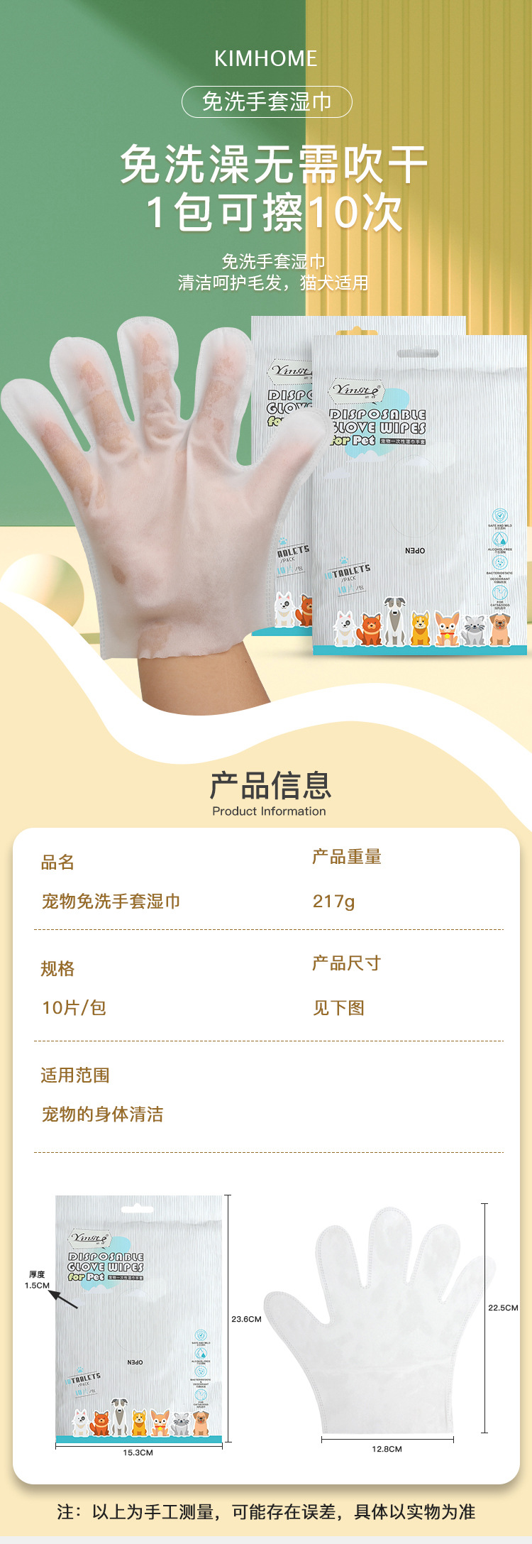 • 일회용 애완동물 워시 프리 장갑 (10 장)