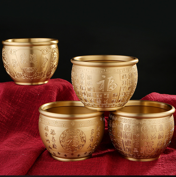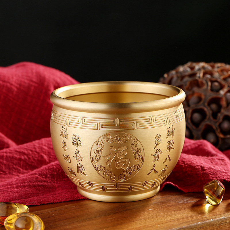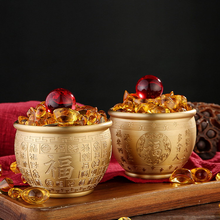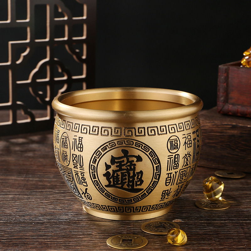 순수 황동 대형 9.5 구경 Baifu 실린더 데스크탑 재떨이 Yuanbao Cornucopia 금속 공예 구리 장식품스토어 가기