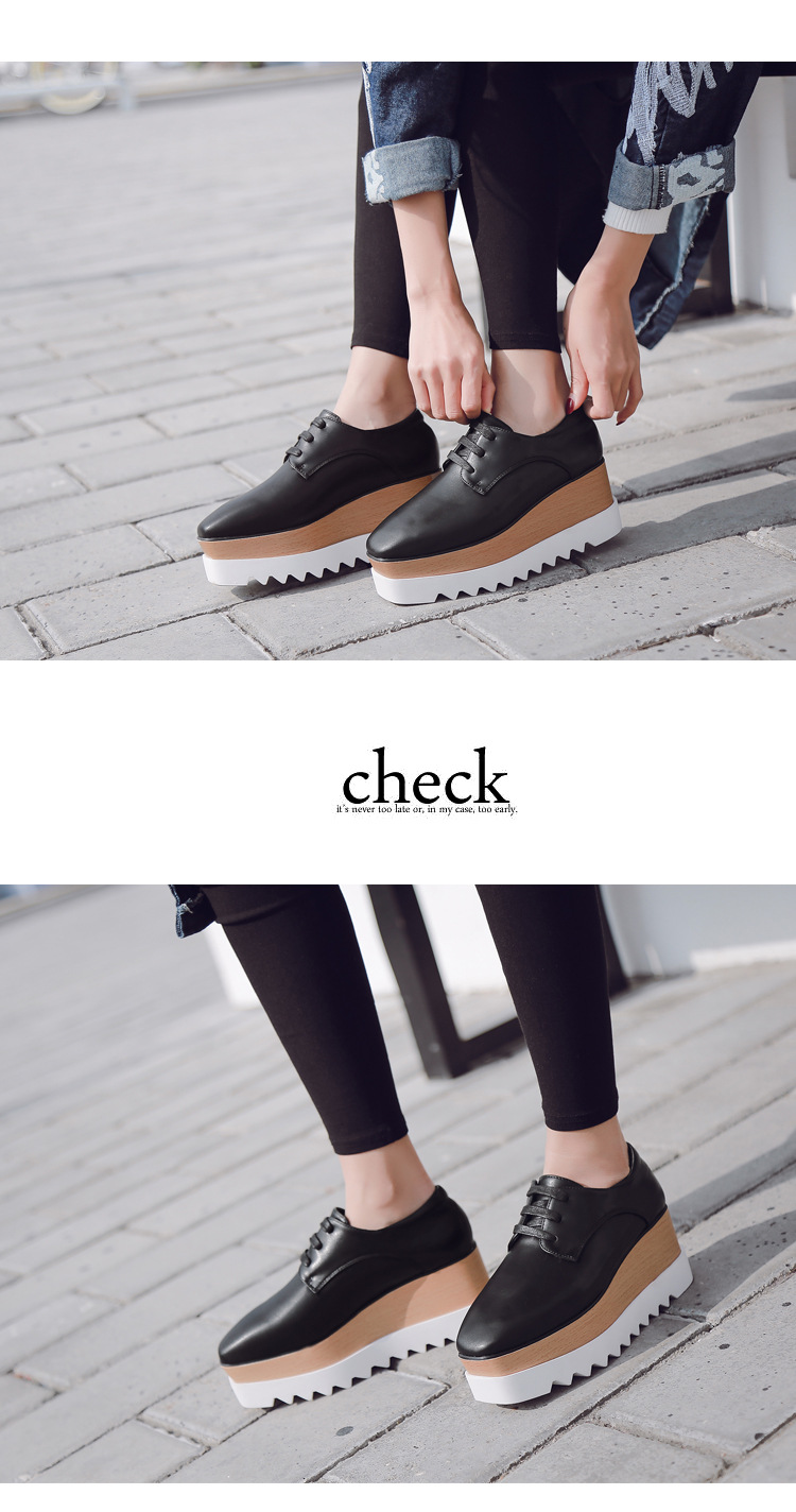 일본 플랫폼 신발 2024 봄과 가을 새로운 레이스 업 방수 플랫폼 웨지 신발 여성 영국 스타일 가죽 신발스토어 가기