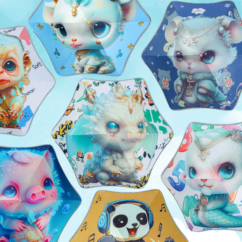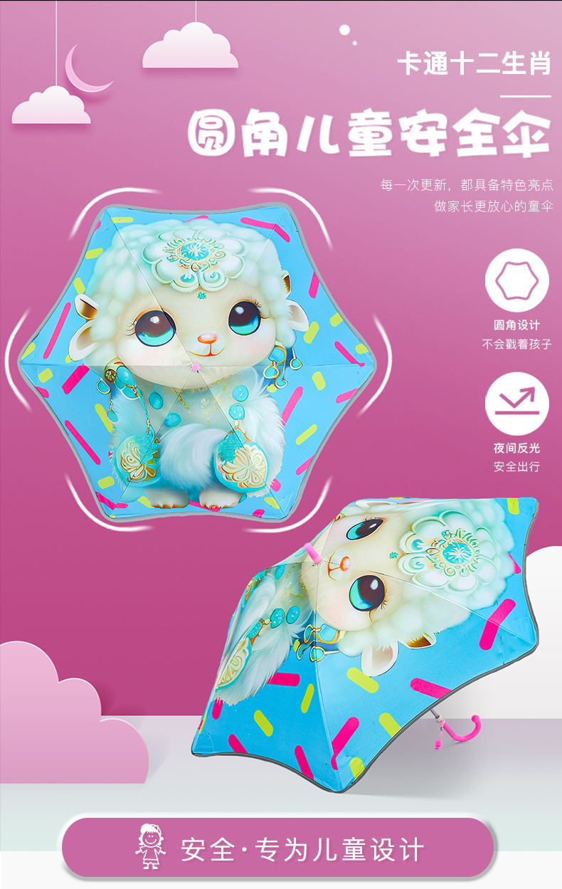 조디악 어린이 우산 도매 둥근 만화 우산 태양 우산 맑은 우산 어린이 우산 검은 고무 자외선 차단제 우산스토어 가기