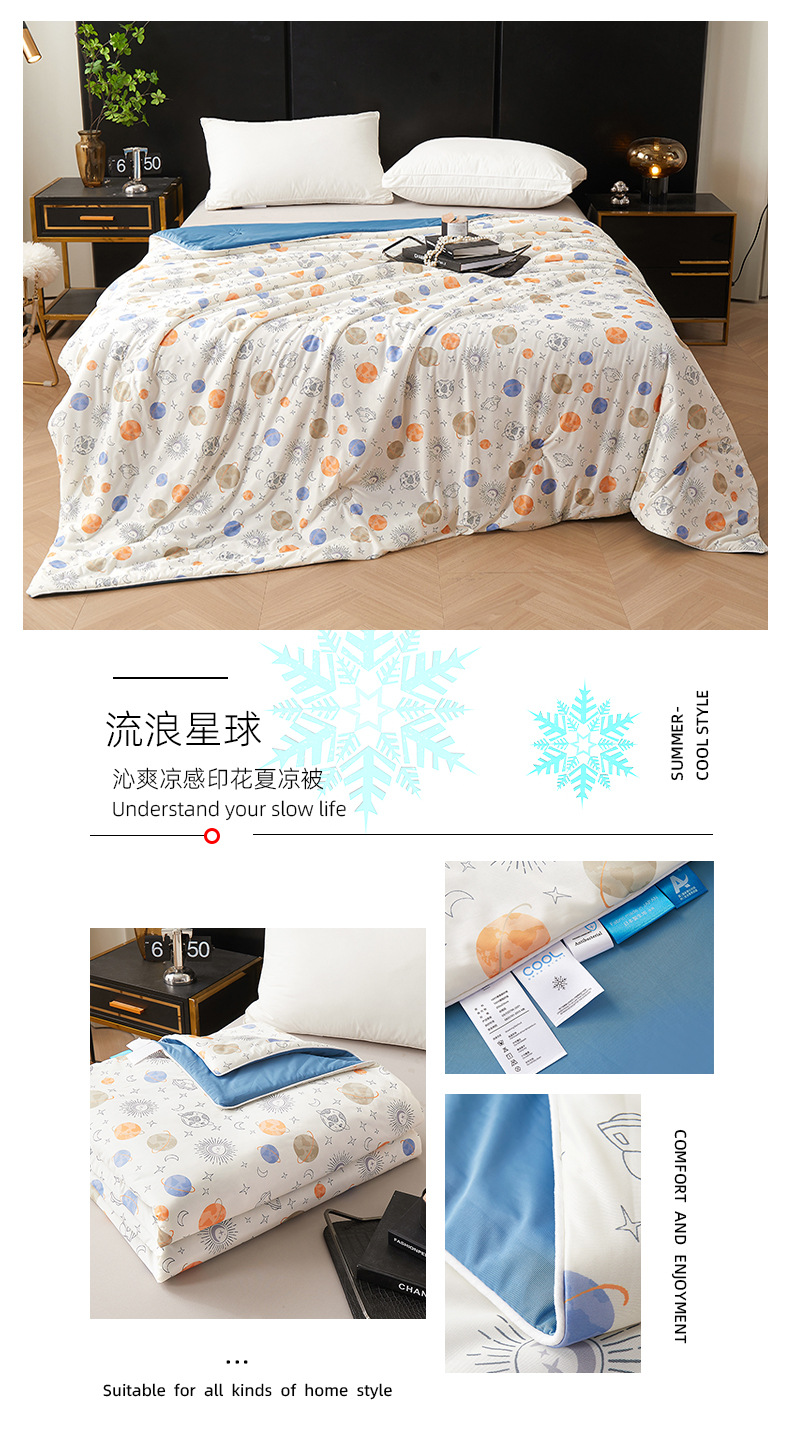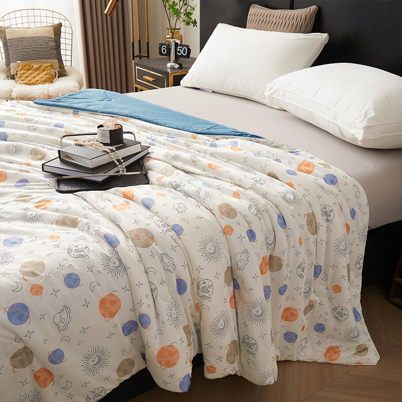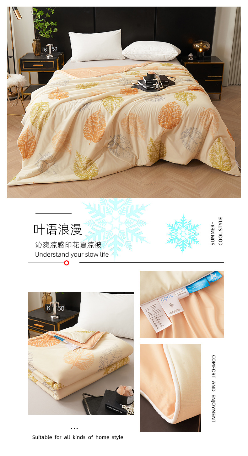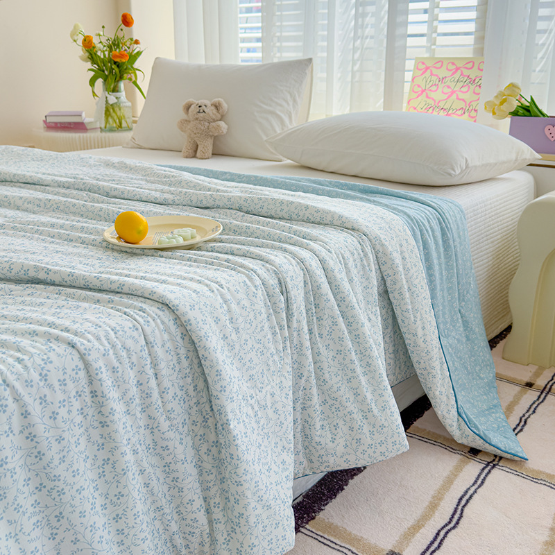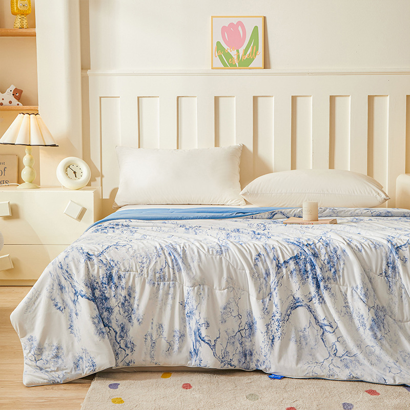 시원한 원사 프린트 이불심, 더블 사이즈 여름 이불, 에어컨 이불, 흡습성 실키 얇은 이불, 여름 필수품, 시원함