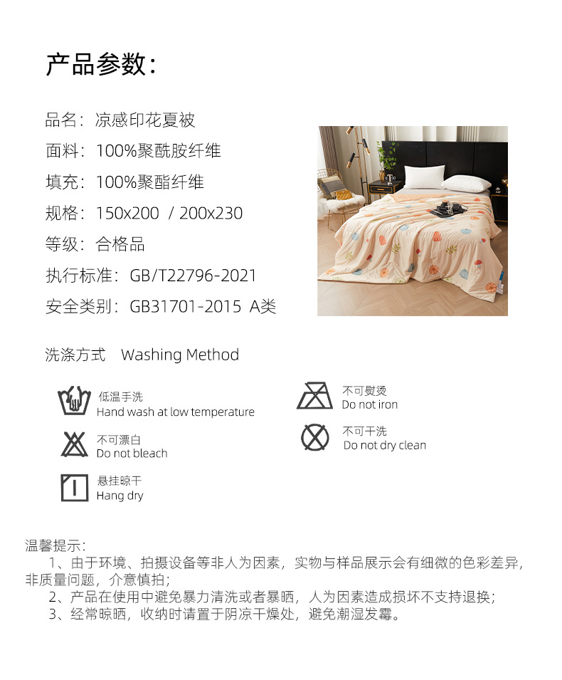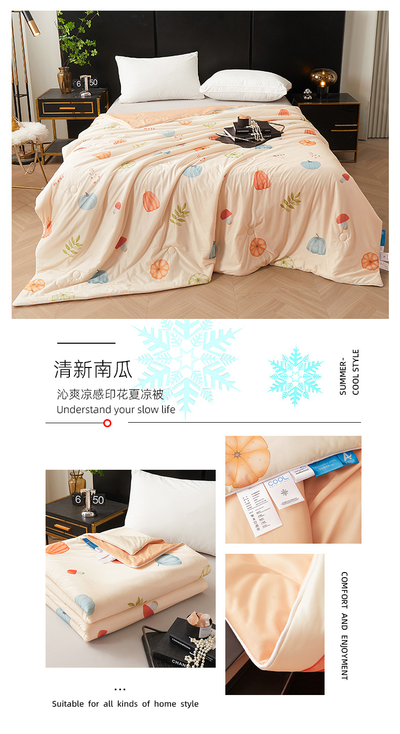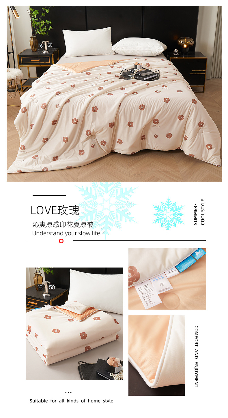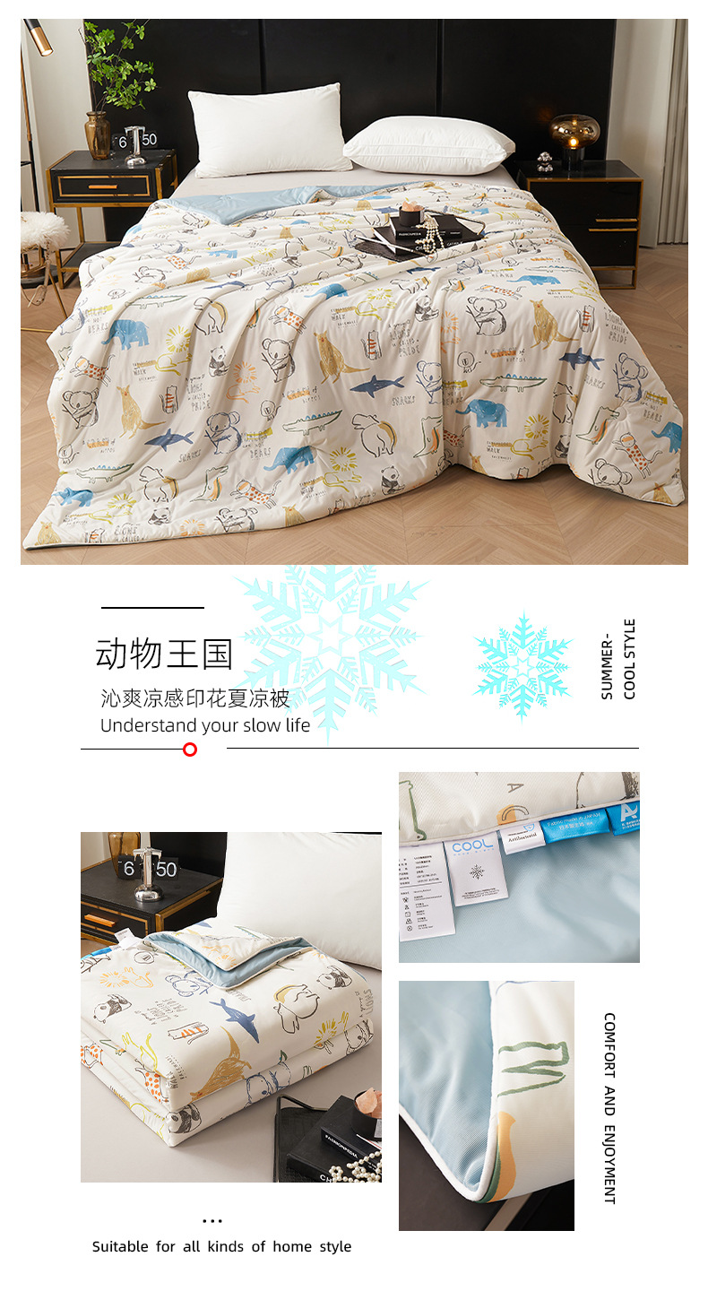 시원한 원사 프린트 이불심, 더블 사이즈 여름 이불, 에어컨 이불, 흡습성 실키 얇은 이불, 여름 필수품, 시원함