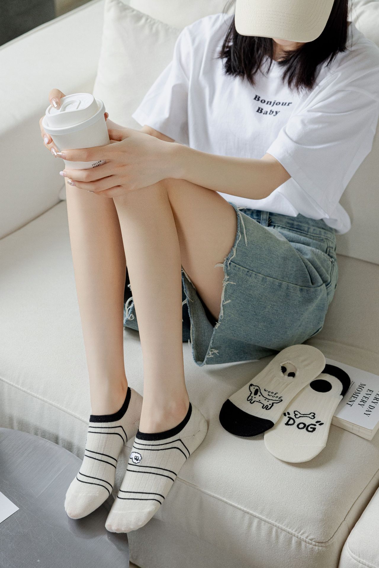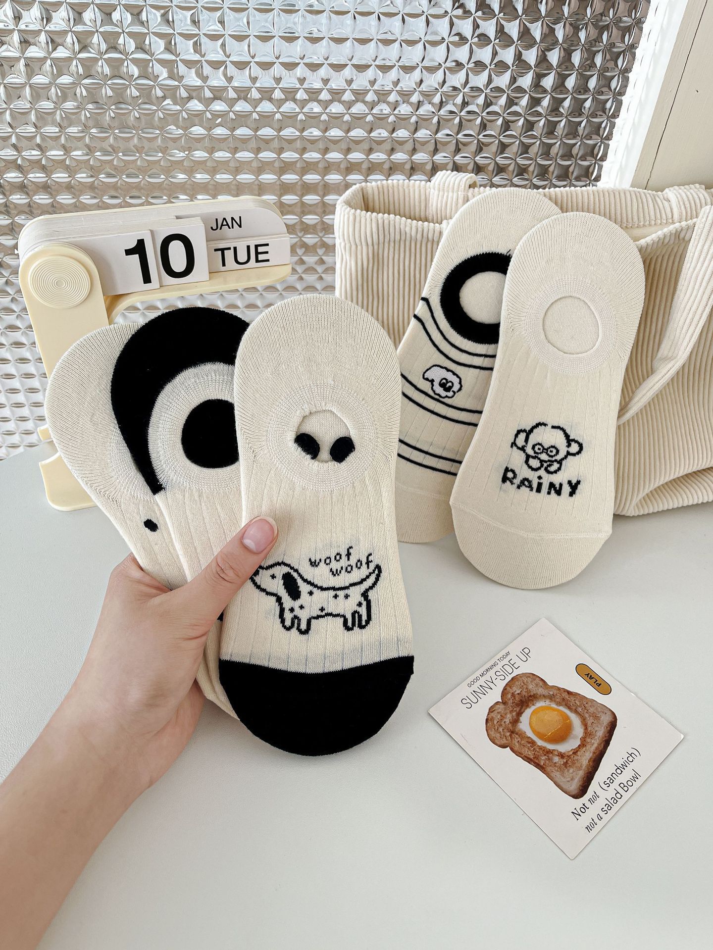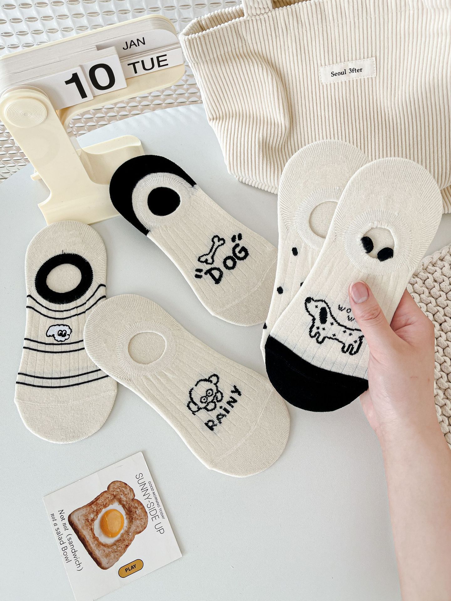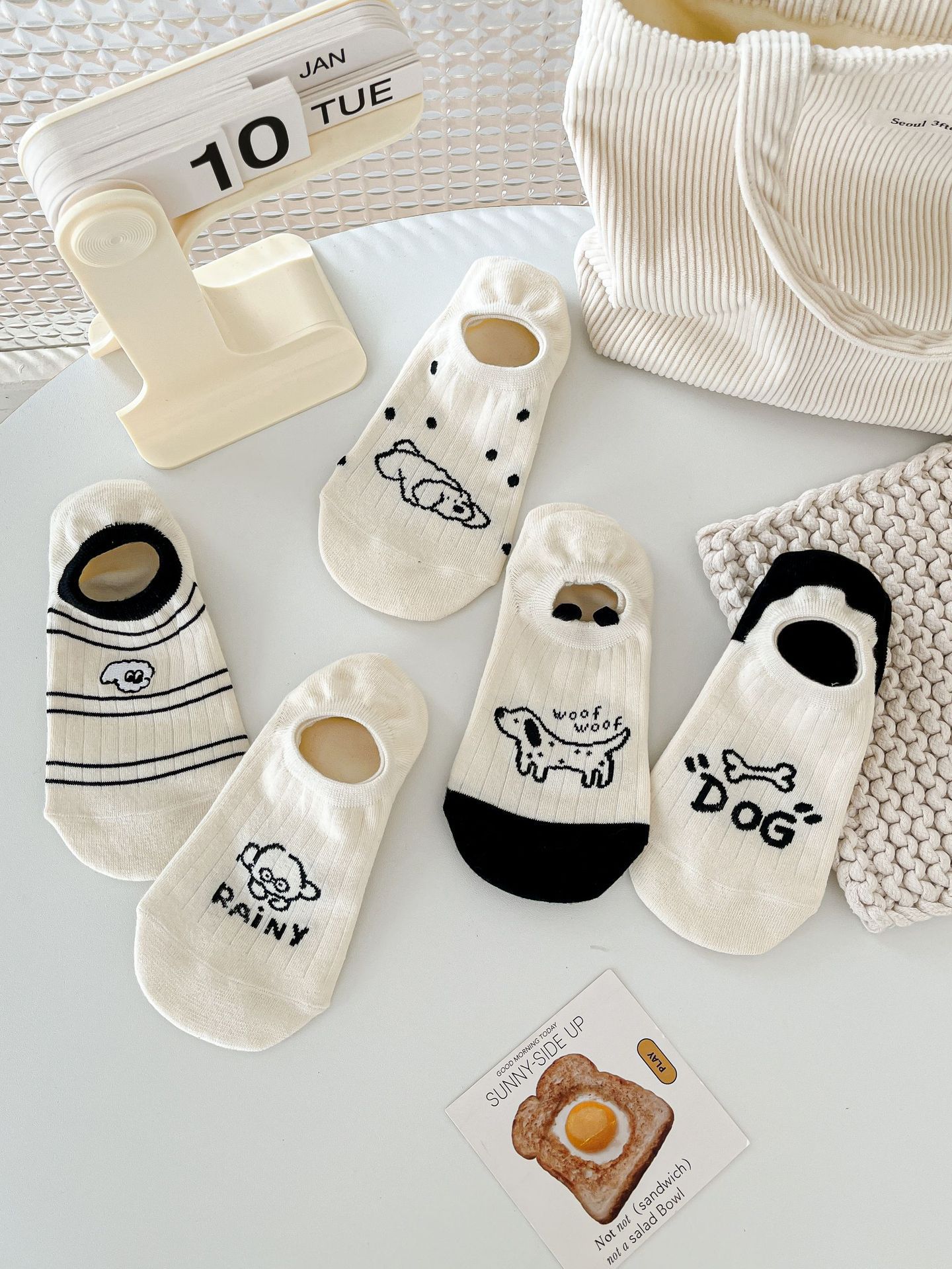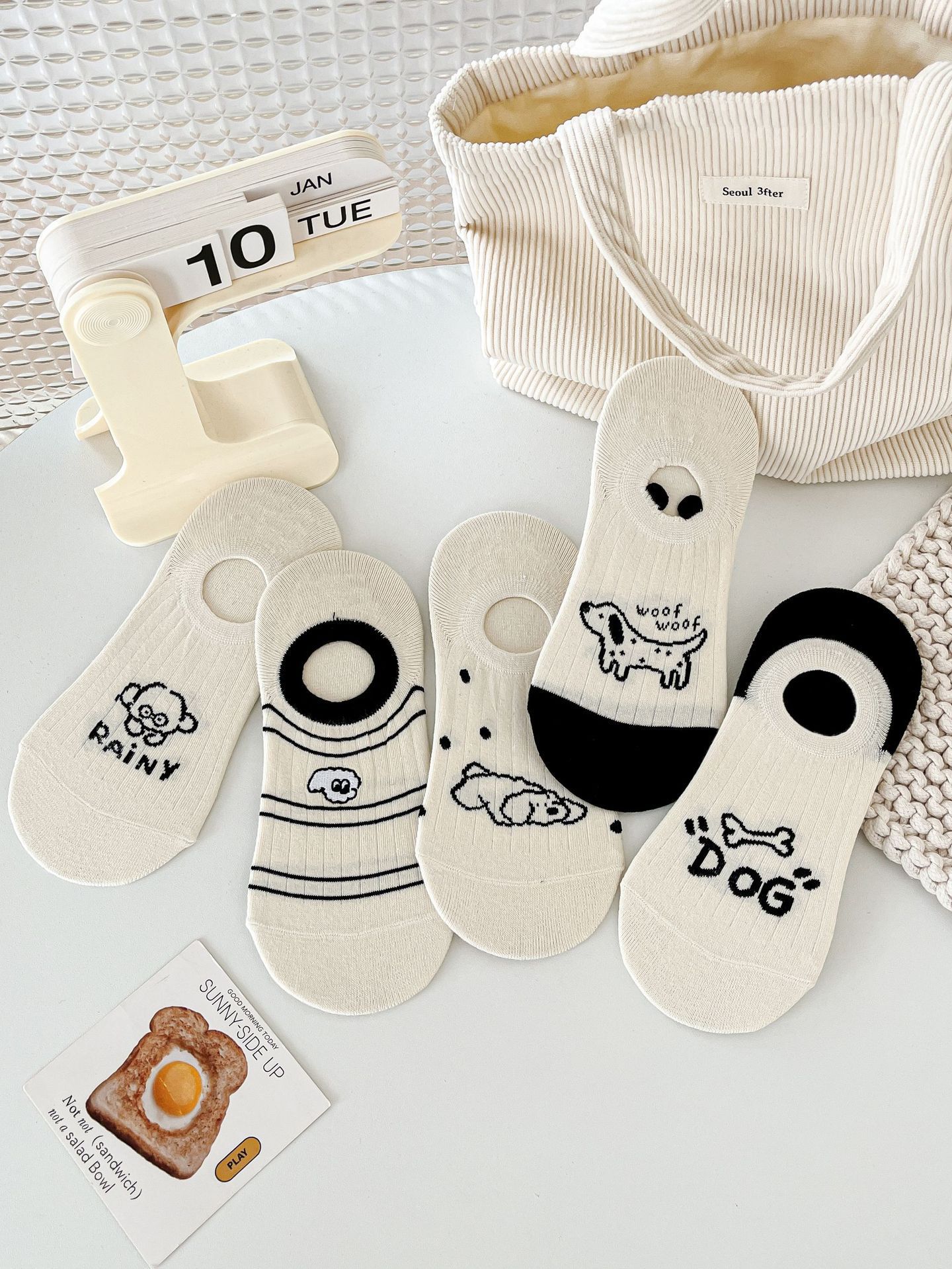 베이지 색 귀여운 강아지 보트 양말 여성 여름 얇은 면 양말 미끄럼 방지 스텔스 양말 여성용 얕은 양말스토어 가기