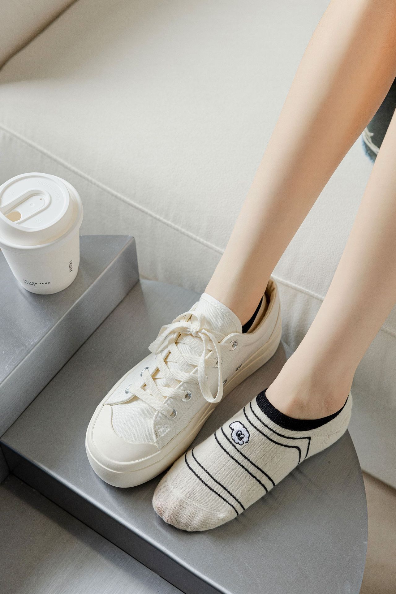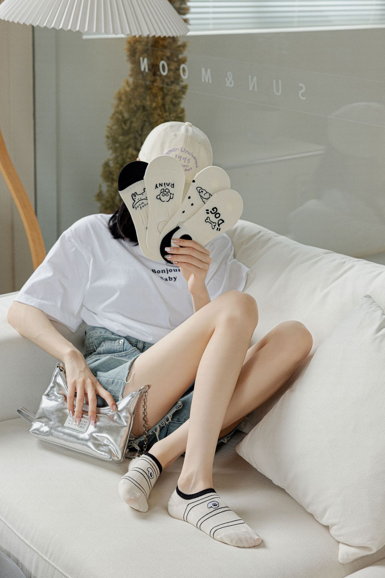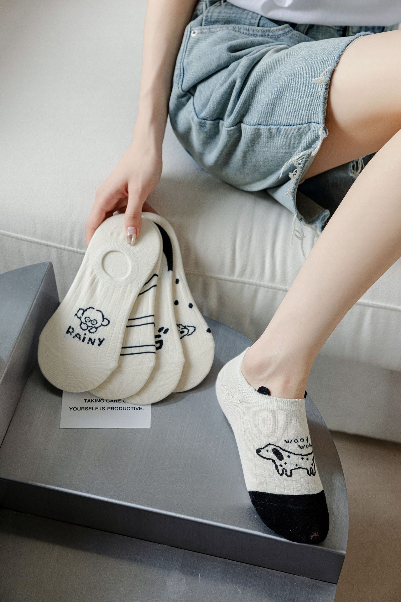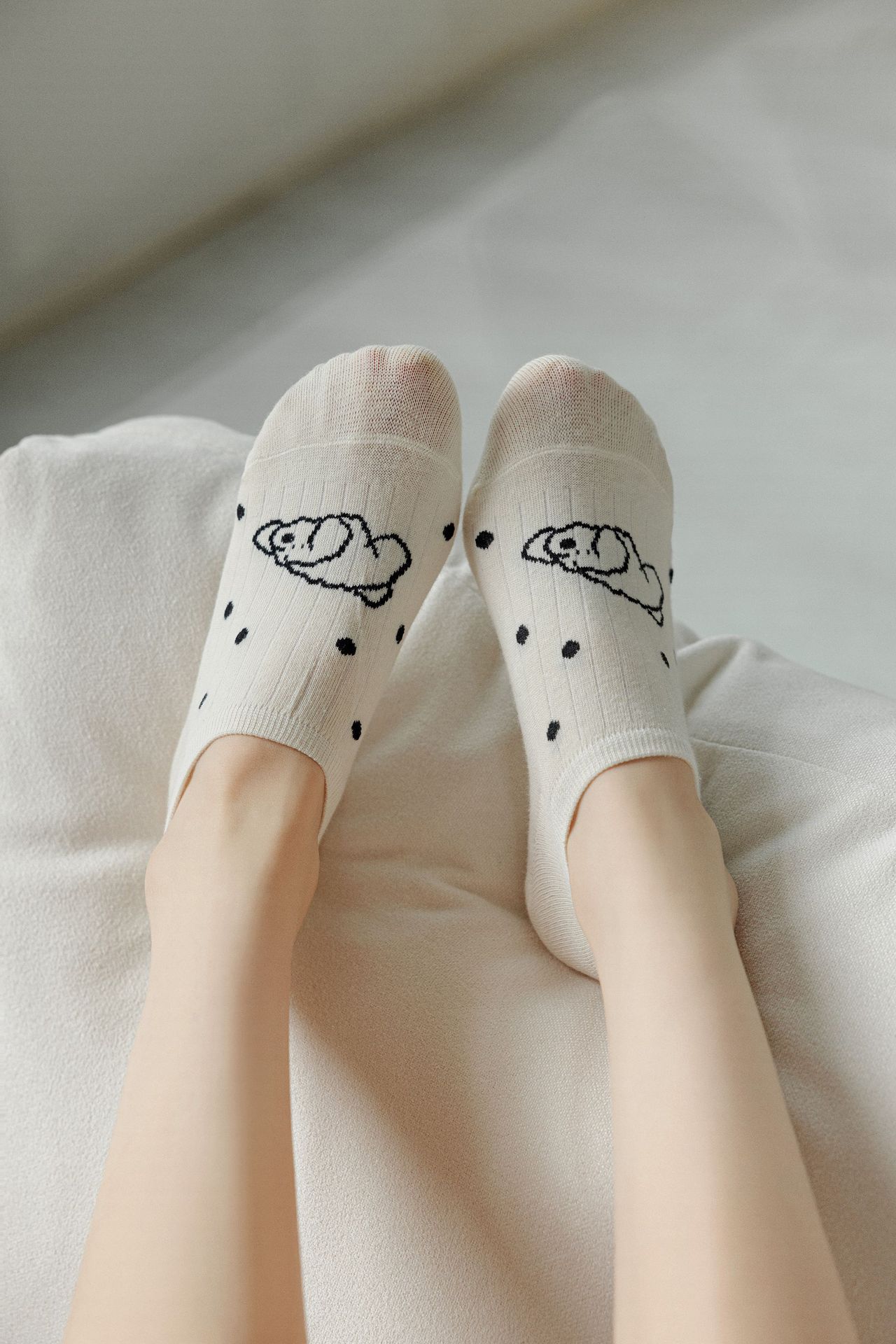베이지 색 귀여운 강아지 보트 양말 여성 여름 얇은 면 양말 미끄럼 방지 스텔스 양말 여성용 얕은 양말