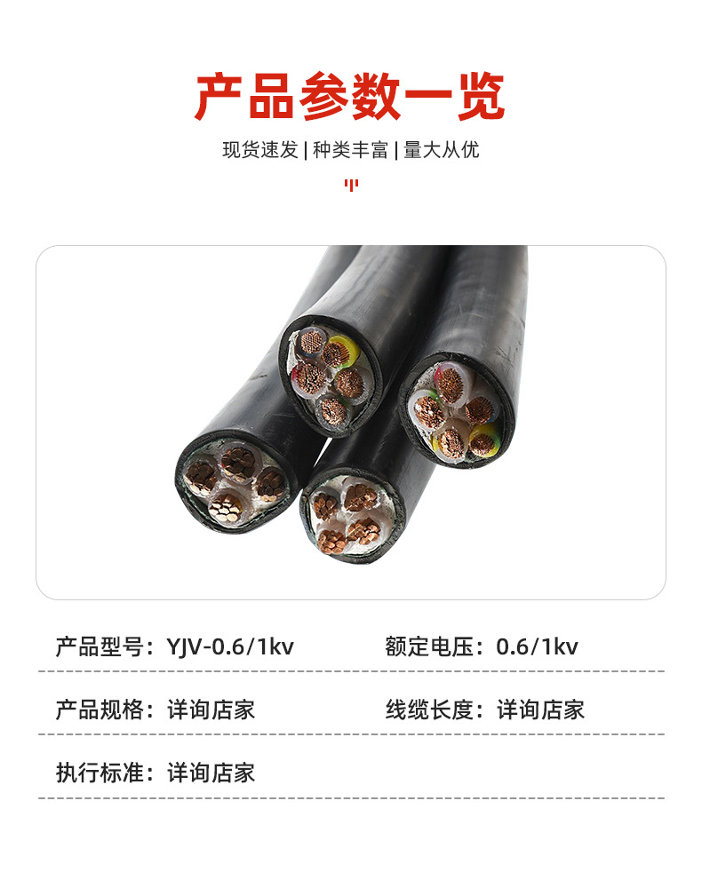 세일링 와이어 및 케이블 난연성 YJV 2/3/4/5 코어 * 1/1.5/2.5/4/6/10 스퀘어 국가 표준 구리 코어 와이어