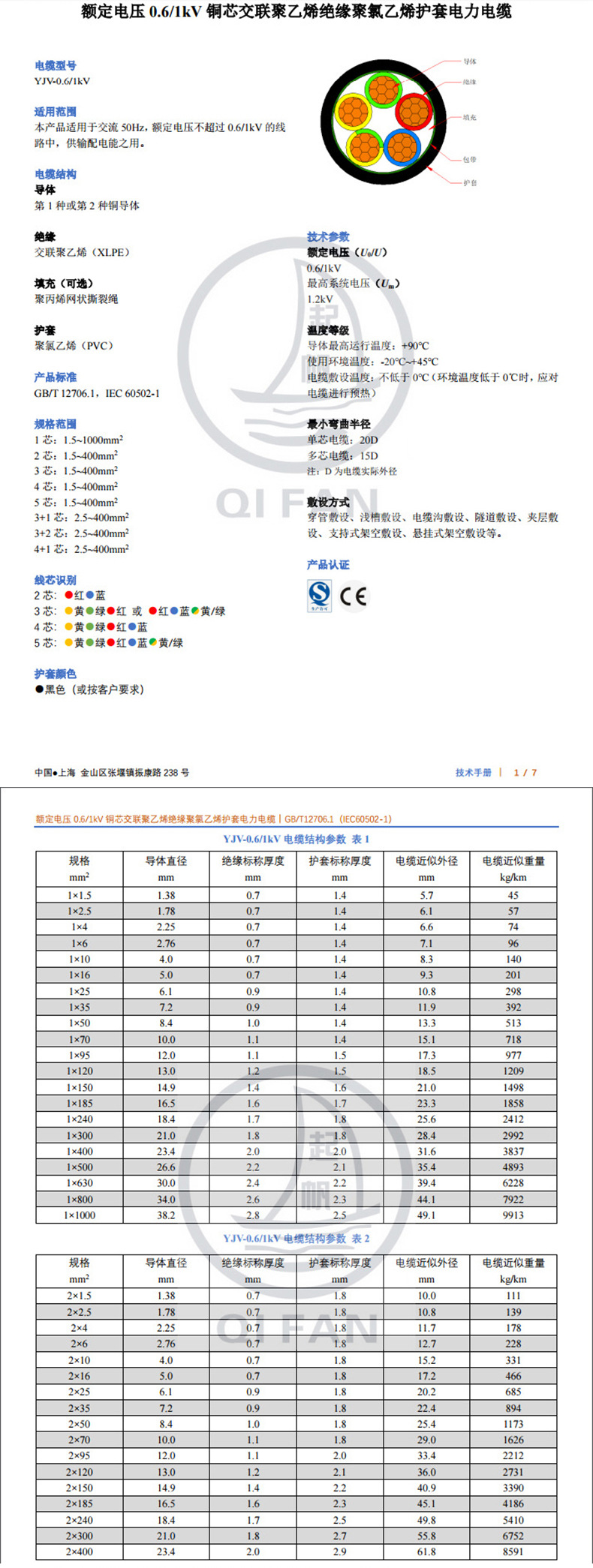 • 일반 하드 케이블 YJV-0.6/1KV 4*120 + 1*70