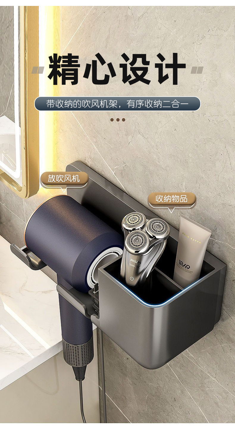 헤어 드라이어 브래킷 펀치 무료 욕실 헤어 드라이어 걸이 랙 욕실 다기능 스토리지 랙 헤어 드라이어 랙스토어 가기